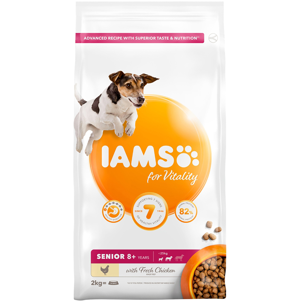 Support your senior dog’s vitality with Iams for Vitality Senior Dog Food for Small and Medium Breeds. With 82% animal protein, this balanced recipe promotes seven signs of healthy vitality, including strong digestion and immune support. Free from wheat, artificial colours, flavours, and fillers, it’s crafted with a powerful antioxidant blend and Vitamin E. Developed by vets with over 70 years of expertise, it’s the perfect choice for dogs aged 8 and above; delicious, nutritious, and easy to digest.