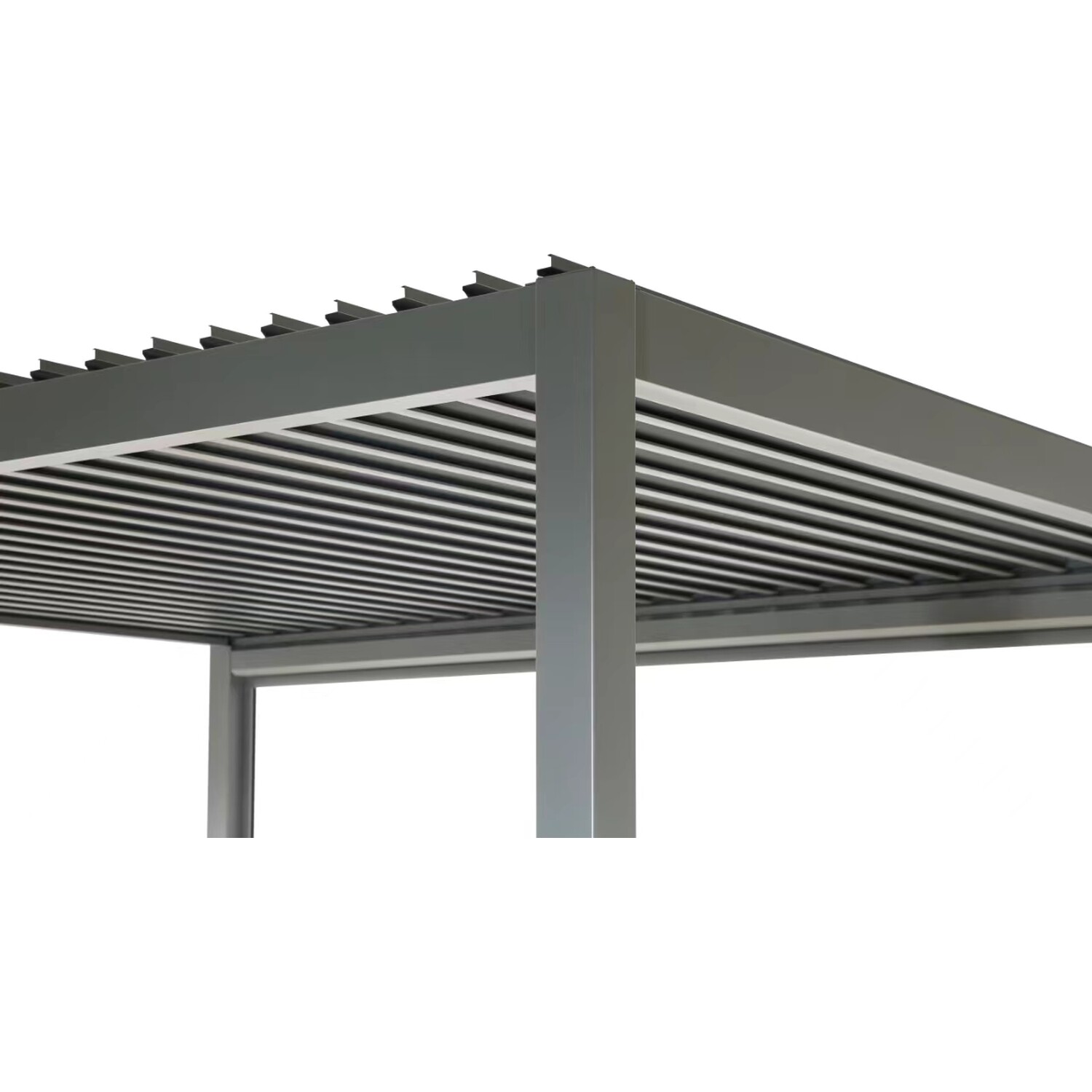 The Ibiza Aluminium Pergola is a fantastic addition to your outdoor space or garden. It is made from durable materials such as aluminium leg poles, horizontal framework, and louvres. The design of this stunning pergola is UV-protected and resistant to fading and other heat-related damage. It also protects you and your family from harmful UV rays. With the tilting louvres, you have the option to switch between a closed, sheltered space, and an open top to allow sunlight to come in. This sleek and stylish pergola is perfect for those who want to enjoy sitting in the sunshine, BBQs, family get-togethers or catching up with friends in the garden. Excellent for pairing with Ibiza Aluminium Pergola Manual Blind, Ibiza Aluminium Pergola Side Shutter and Ibiza Aluminium Pergola Side Wall, each sold separately, to create the ideal outdoor setting to sit back and relax. The louvres lead water to the side and through the built-in drainage and guttering system that leads the water through the legs and onto the ground.
