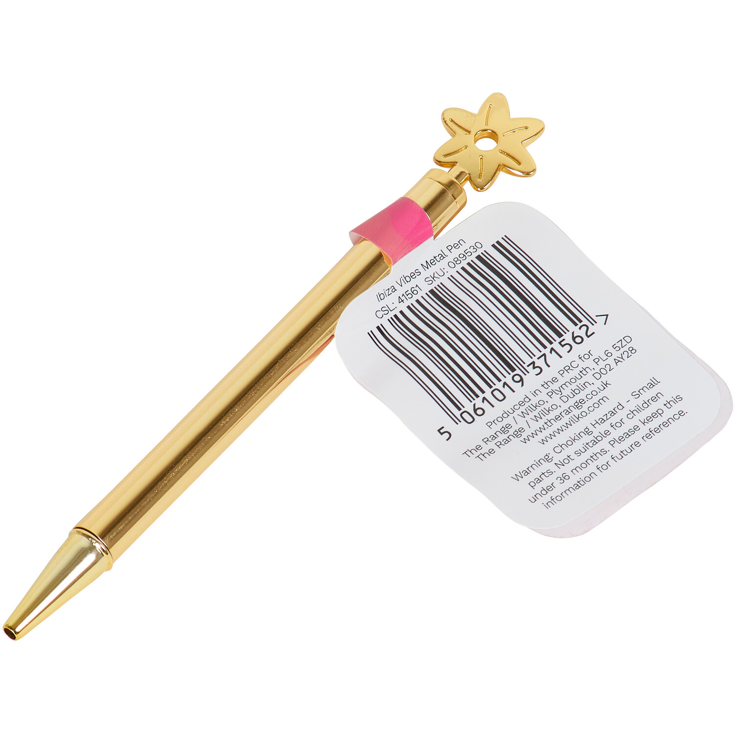 Make a charming addition to your stationery set with this Ibiza Vibes Metal Pen. The pen features a shiny gold finish with a gorgeous sun topper, perfect for those summery days in the office or at home. Get the other matching products from the Ibiza Vibes collection to complete your set.