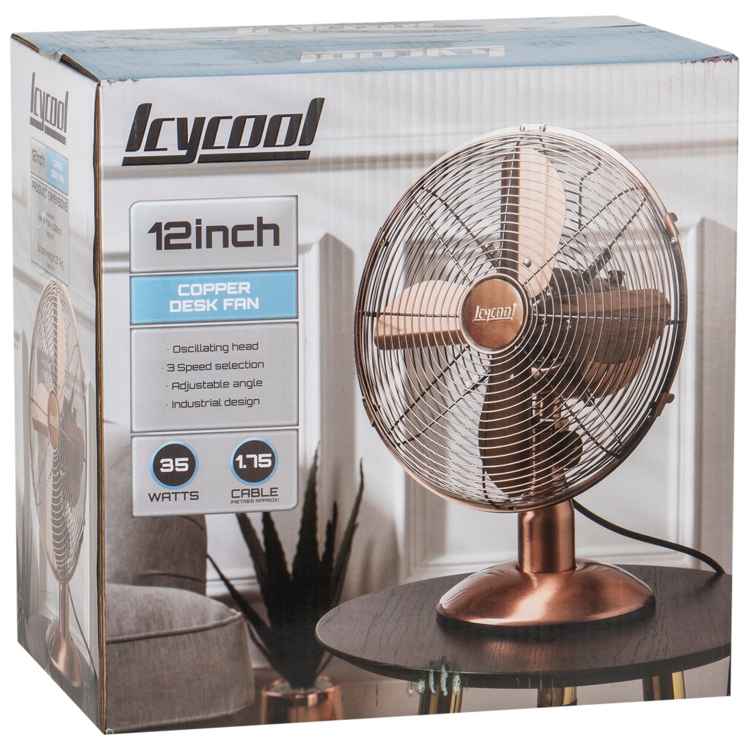 Stay cool on the hottest summer days with the 12-inch Icycool Copper Desk Fan, designed to deliver a refreshing breeze wherever you need it. Boasting three adjustable speeds and an adaptable angle, this fan offers tailored comfort. The durable four metal blades and full copper motor combine longevity with elegance, making it a perfect companion for bedrooms, home offices, or living rooms, all while adding a touch of sophisticated rosy copper to your decor.