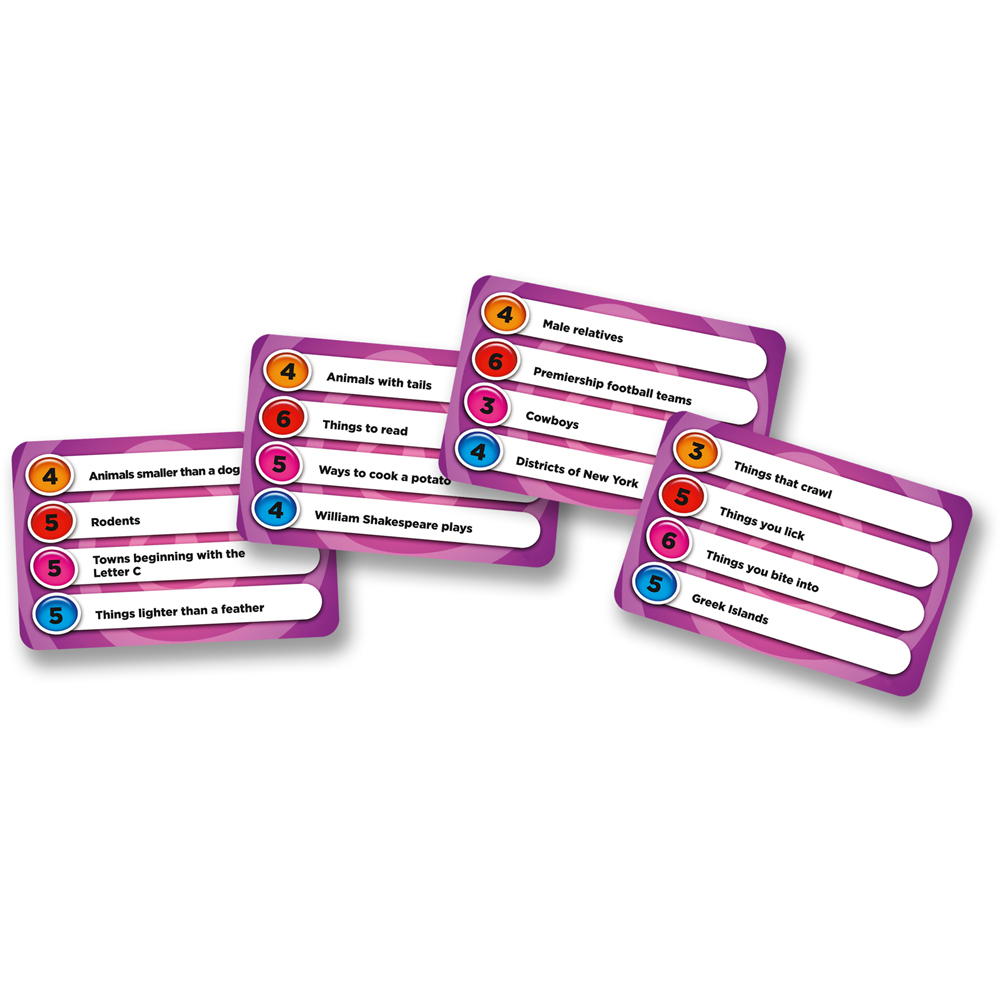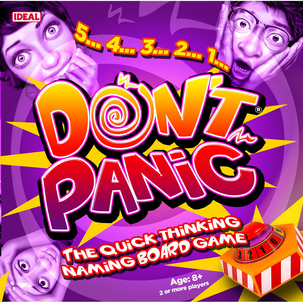 Amplify fun during family gatherings with the Ideal Don't Panic Family Board Game, a quick and exciting 'naming' game that will put your thinking skills to the test. With the timer ticking, can you name three things from the category on your card before time runs out? Don't let panic set in as the subjects range from simple to challenging, making it an ideal game for all members of the family. This game can be enjoyed by two or more players and is perfect for a fun-filled time.
