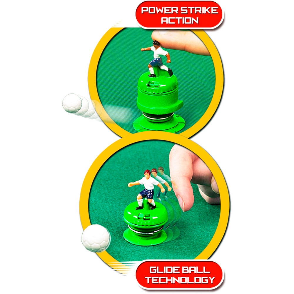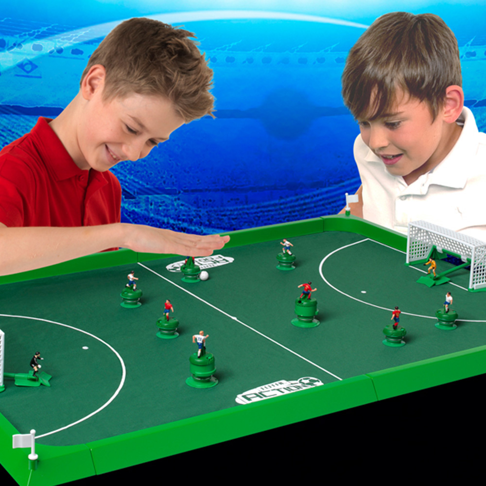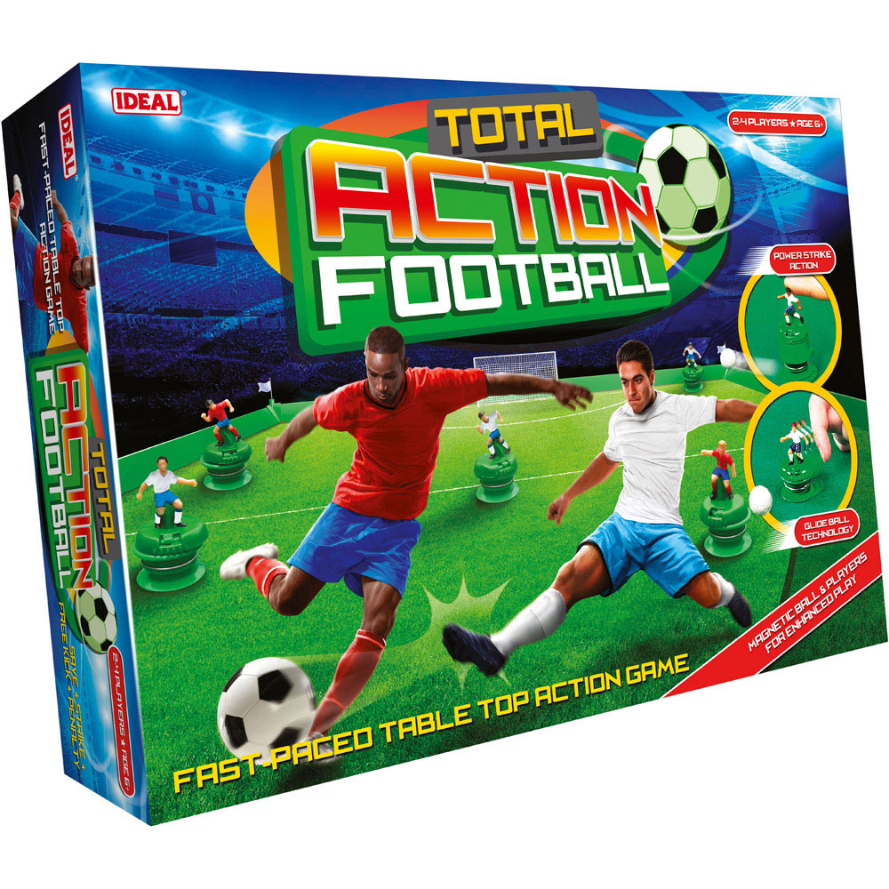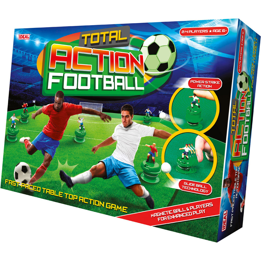 Amplify fun during family gatherings with the Ideal Total Action Football, a thrilling and realistic five-side table-top football game that will keep you on the edge of your seat. With magnetic action, each player can effortlessly pass, shoot or trap the ball, making gameplay smooth and seamless. This game boasts power-strike action, glide-ball, easy-player slide technology and even a diving goalie to take the excitement to the next level. Suitable for two to four players, get ready to immerse yourself in endless hours of fun and entertainment with this game. Suitable for ages six years and above.