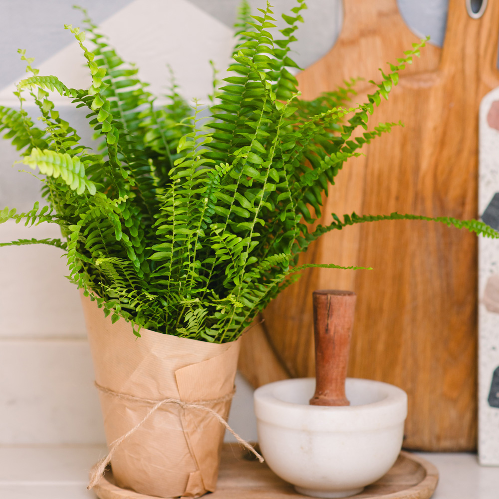 Loved for its vibrant green leaves which can cascade down the side of your pot or hanging basket, a fern is one of the most popular green indoor plants.