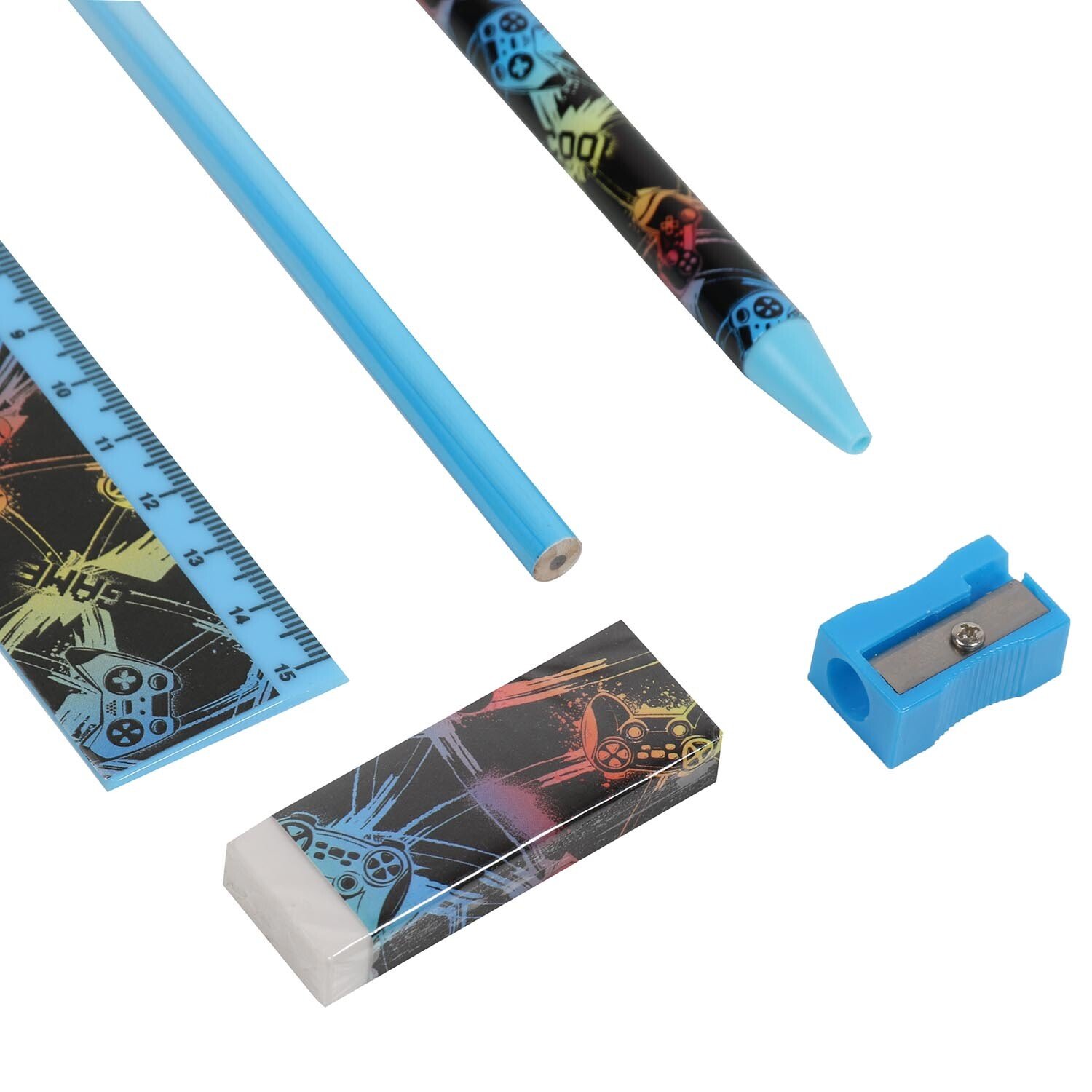 This fun Idoodle Gamester Stationery Set has everything you need in one convenient pack. Perfect for school, work or home, this stationary set includes a pen, pencil, ruler, eraser and sharpener, all packed into a handy wallet. Decorated with a cool controller design, this set is the perfect gift for any gaming fan.