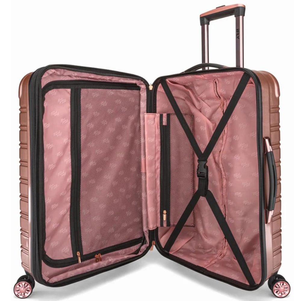 iFLY 3 Piece Rose Gold Fibertech Hard Shell Spinner Travel Suitcase Set