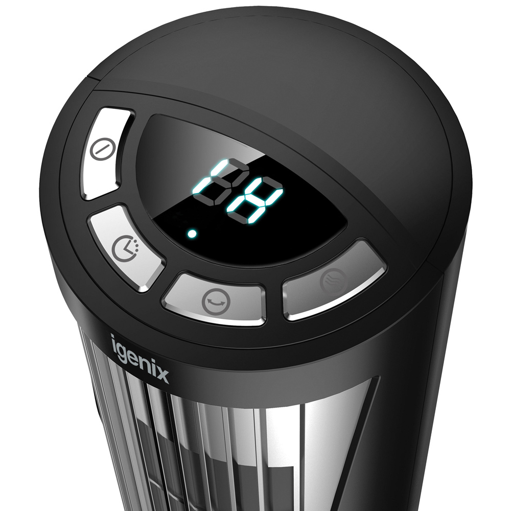 Stay cool all season long with the Igenix Black Digital Mini Tower Fan 12-inch. Its compact cylindrical tower design is perfect for saving space, making it smaller than a standard desk fan. You can easily place it on shelves, desks, or bedside tables. The oscillation function ensures that the air is evenly distributed throughout the room. With 3-speed settings, you can adjust the power levels to your liking. The 8-hour timer allows you to set it up conveniently for those hot summer nights. Control it with electronic buttons. Product Dimensions: H300 x W110 x D100cm.
