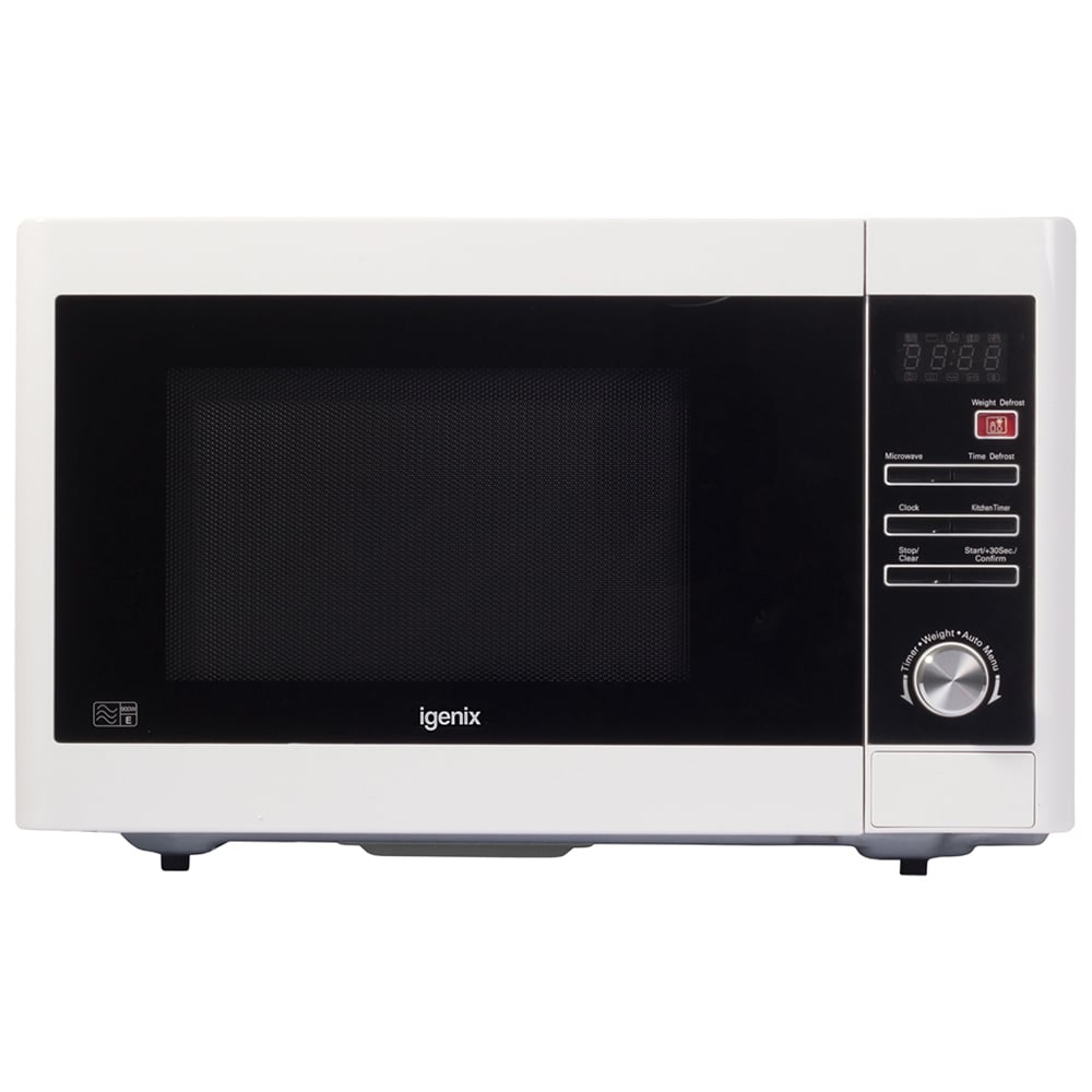 Prepare meals easily and quickly with this Igenix White 30L Digital Microwave. This family-sized digital microwave has an impressive 900W of cooking power for fast cooking, five power levels to choose and a huge 30L cooking capacity. It features ten auto-cook programmes – great if you’re short on time and need the hassle-free convenience of pre-set cooking functions. Also, it comes with a 95-minute programmable timer with a clear digital display for ease of use. With an enormous interior, it ensures you have enough space to heat larger items, such as lasagne, cottage pie and pizza. Easy to use, the device comes complete with a child safety lock for added peace of mind and a push-button door.