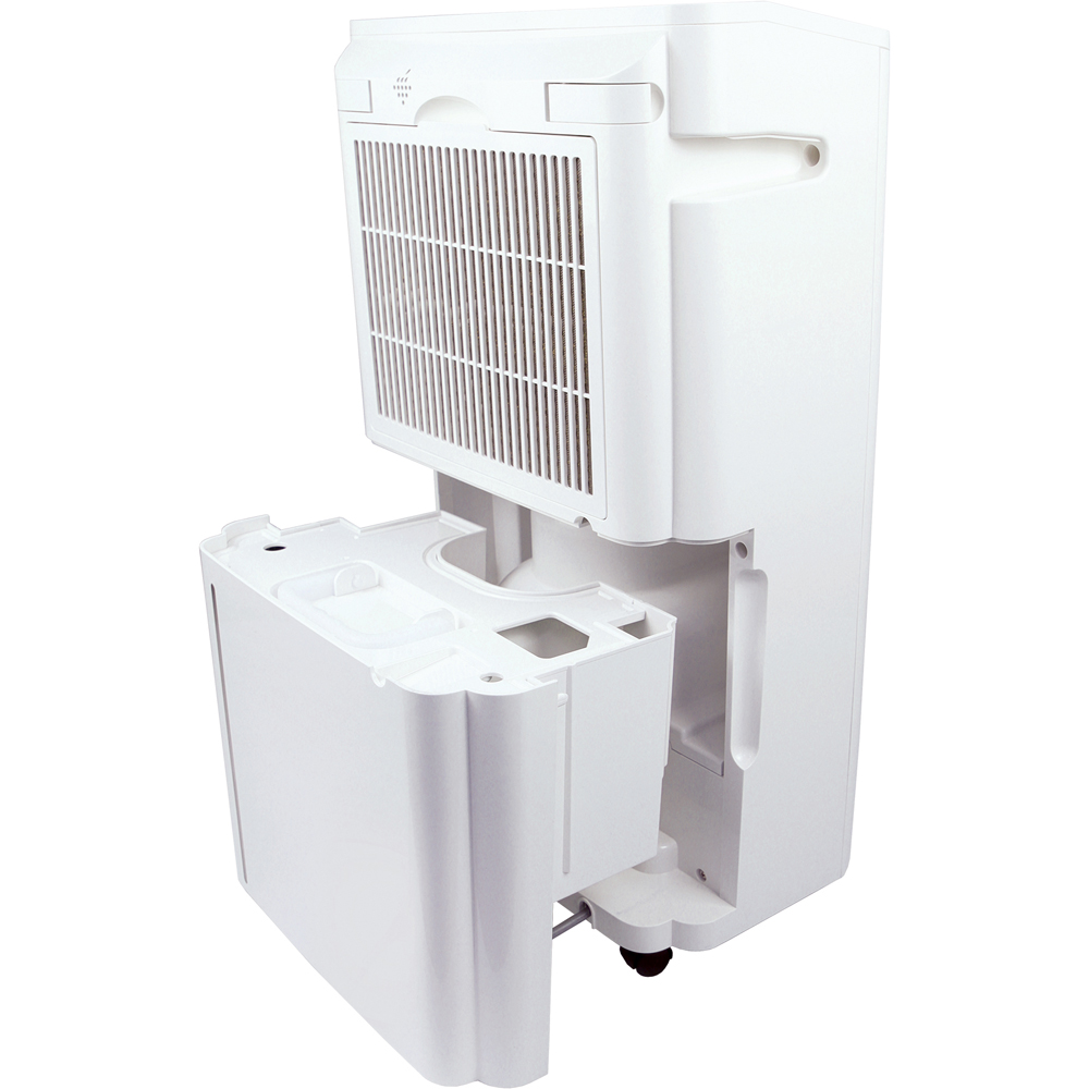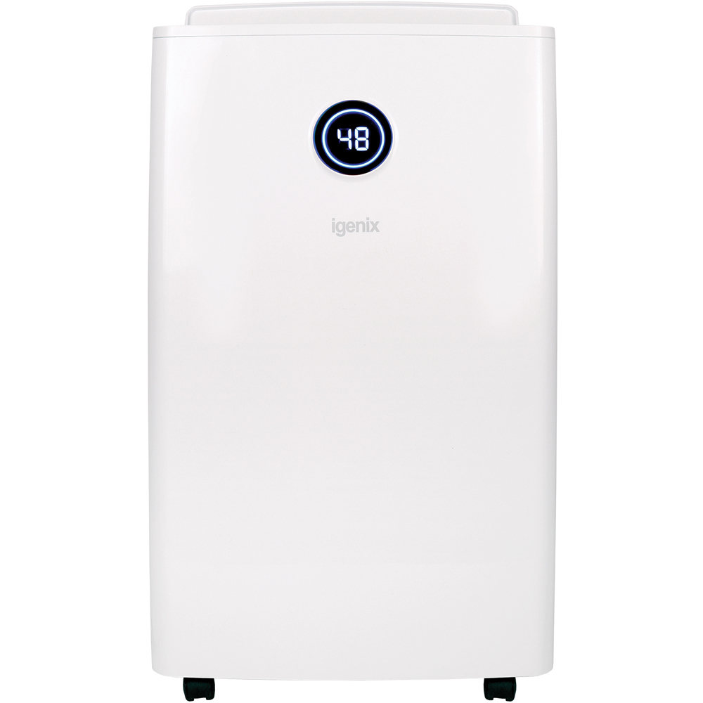 Keep your home fresh and free of excess moisture with Igenix White Dehumidifier 20L. This Igenix 20L dehumidifier features a Silver Ion Filter that is capable of extracting up to 20L water per day. Its automatic switch-off facility is set to 5.5L, and the 3-colour environmental humidity indicator lamp helps you keep track of the humidity in the machine's vicinity. The IGHW020TDW has an easy-to-carry handle, making it easy to transport. It also has up to 24hr timer as well as a continuous drainage option.
