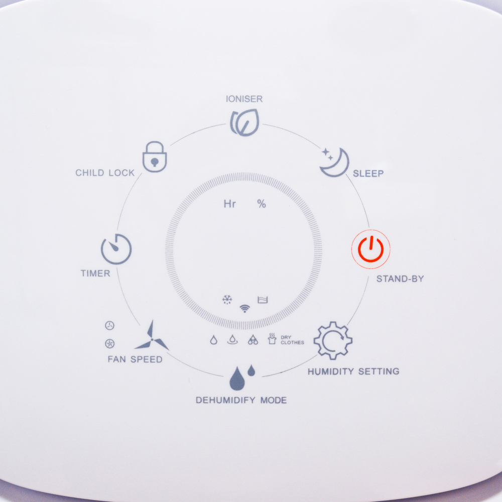 Create a comfortable setting in your home with Igenix White Dehumidifier. It is capable of extracting up to 12 litres in 24 hours. The dehumidifier comes with four dehumidifying modes, two fan speeds, a 24-hour timer, a sleep mode and an ioniser function. It is suitable for rooms sized up to 15m2 and includes a continuous drainage option. The easy-to-use touch control LED panel is located on top. It includes a child lock to prevent any unwanted tampering. Dimensions: H46 x W28 x D24cm.