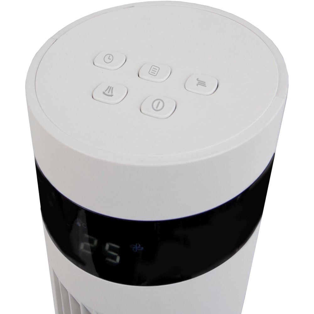 Stay cool all year round with the Igenix White Digital Tower Fan 35-inch. This fan offers three wind speed settings and three wind modes, including normal, natural, and night mode. You can easily control this portable fan using the onboard button control panel or the included remote control. With its smooth 85-degree horizontal oscillation, the fan operates quietly, ensuring minimal disturbance. Additionally, it features an LED display for convenient use with the remote control.