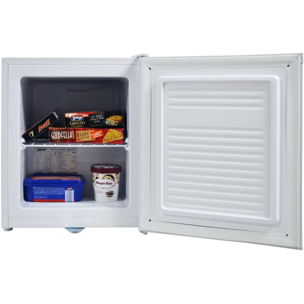 This Igenix Table Top Freezer in white is perfect for smaller kitchens, flats and student accommodations, or as a second freezer in larger households. Also suitable for schools and offices too. The compact countertop design and reversible door mean it can be fitted in almost any space. Additionally, the door lock makes the freezer ideal keeping certain items away from children in families or shared accommodation. With a generous 35-litre capacity, the freezer also has a handy wire shelf to help you organise your food and drinks.