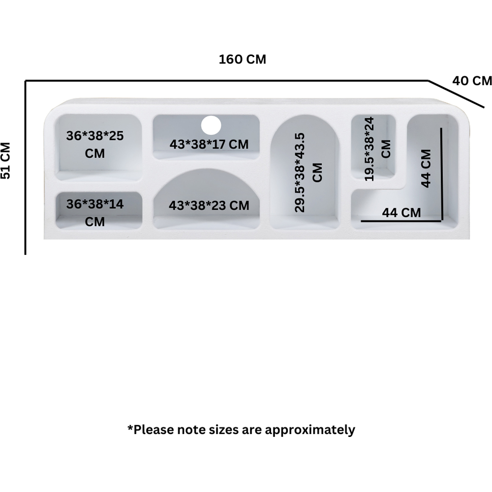 IH Design Udaipur 7 Shelf White Wood Large TV Cabinet