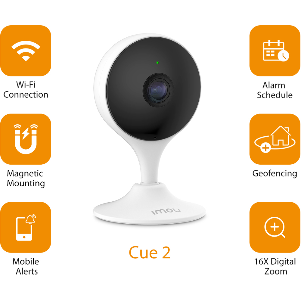 Improve your house security with the IMOU White Cue 2 Indoor Camera. This indoor smart Wi-Fi plug-in camera features a 1080P/2MP resolution and infrared night vision. It includes active deterrence of a 110dB siren, AI human detection, abnormal sound alarm, two-way talk and diversified storage. This camera supports NVR and Cloud with a 30-day free trial or micro SD card of H.265. It has a magnetic mounting function and provides mobile alerts, alarm schedules, geofencing and 16x zoom. This flexible camera helps you be aware of your surroundings and keep your space safe.