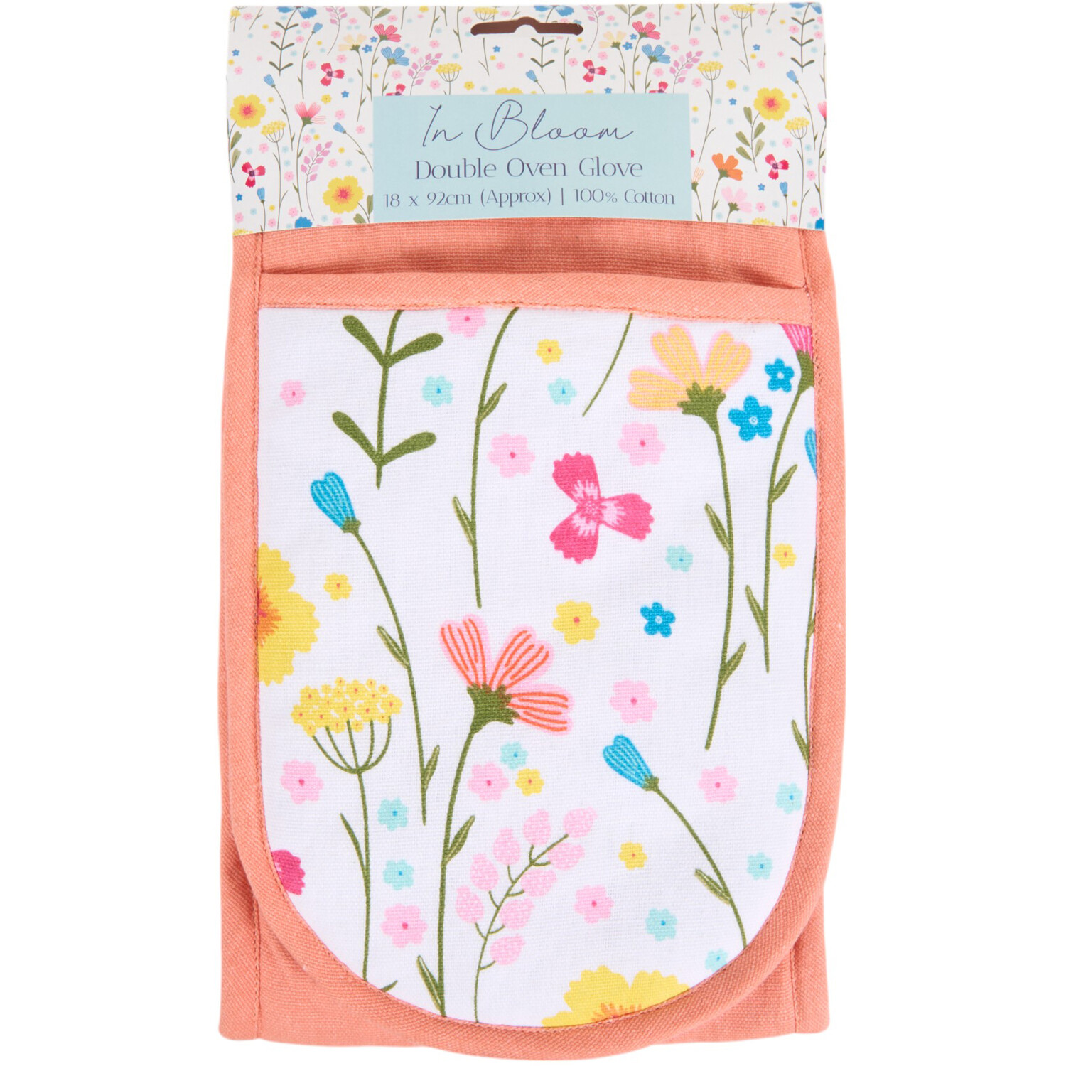 Keep your hands safe and secure with this In Bloom Double Oven Glove. Made with soft and comfortable cotton, it's perfect for handling hot bakeware straight from your microwave or oven. Its beautiful floral design adds a pop of colour to your kitchen. With matching items, you can pair the glove with other coordinating kitchenware products in the collection to create a cohesive look.
