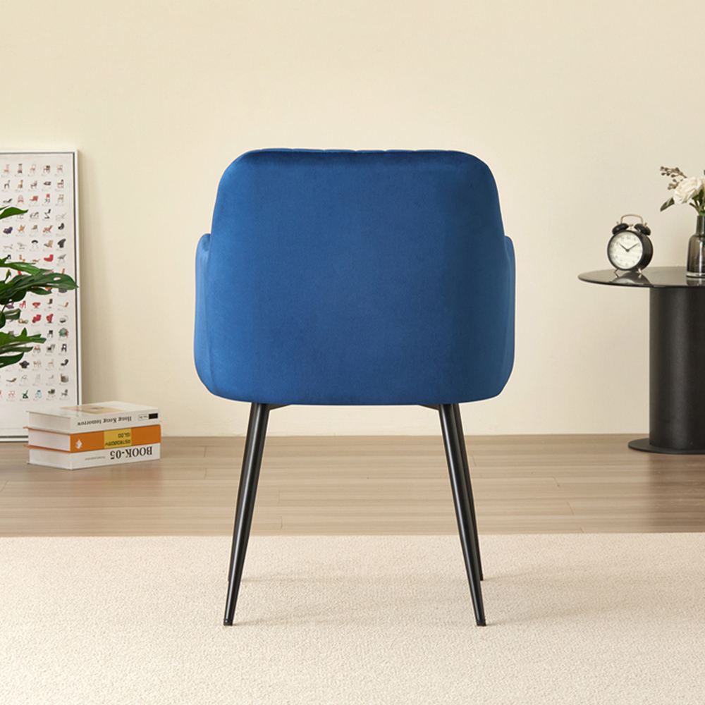 Introduce an elegant addition to your dining space with the Indoor Living Seattle Charlotte 4 Seater Round Dining Set Blue. This contemporary and polished round dining table features a marble tabletop with a uniquely designed sturdy metal base in matte black. It is paired with four blue Charlotte chairs with curved armrests, completing the luxurious look. The chairs are crafted from high-quality velvet material, featuring sleek stitched lines and sturdy metal legs with a matte black finish. This dining and chair set gives your dining area a transformed modern vibe, enhancing its appeal. It is the perfect addition to your space for hosting guests and family dinners.