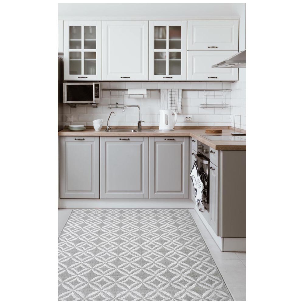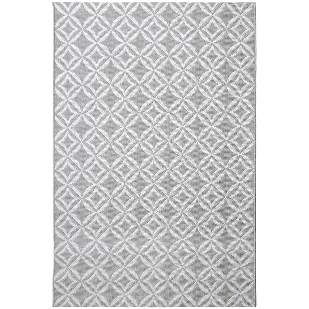 Style your home with this Indoor/Outdoor Diamond Tile Rug Grey 160. This on-trend, stylish, sliver design rug will transform your home or garden and is suitable for indoors and the outdoors. Not only modern but durable too, this rug is made from 100% polypropylene pile that's incredibly easy to care for and a 3mm pile height that won't embed dust or debris. Use of rug grip is recommended for use on hard floors. These rugs are UV and water-resistant, perfect for domestic use.