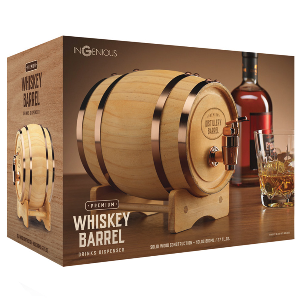 Add an exciting edge to your parties with the Ingenious Wooden Keg Whiskey Barrel. Crafted from high-quality wood, this barrel infuses a subtle rustic flavour into your whiskey, enhancing and enriching its taste. With a generous capacity of 8000ml, its the perfect centrepiece for your home bar, adding a touch of old-world charm to your parties.