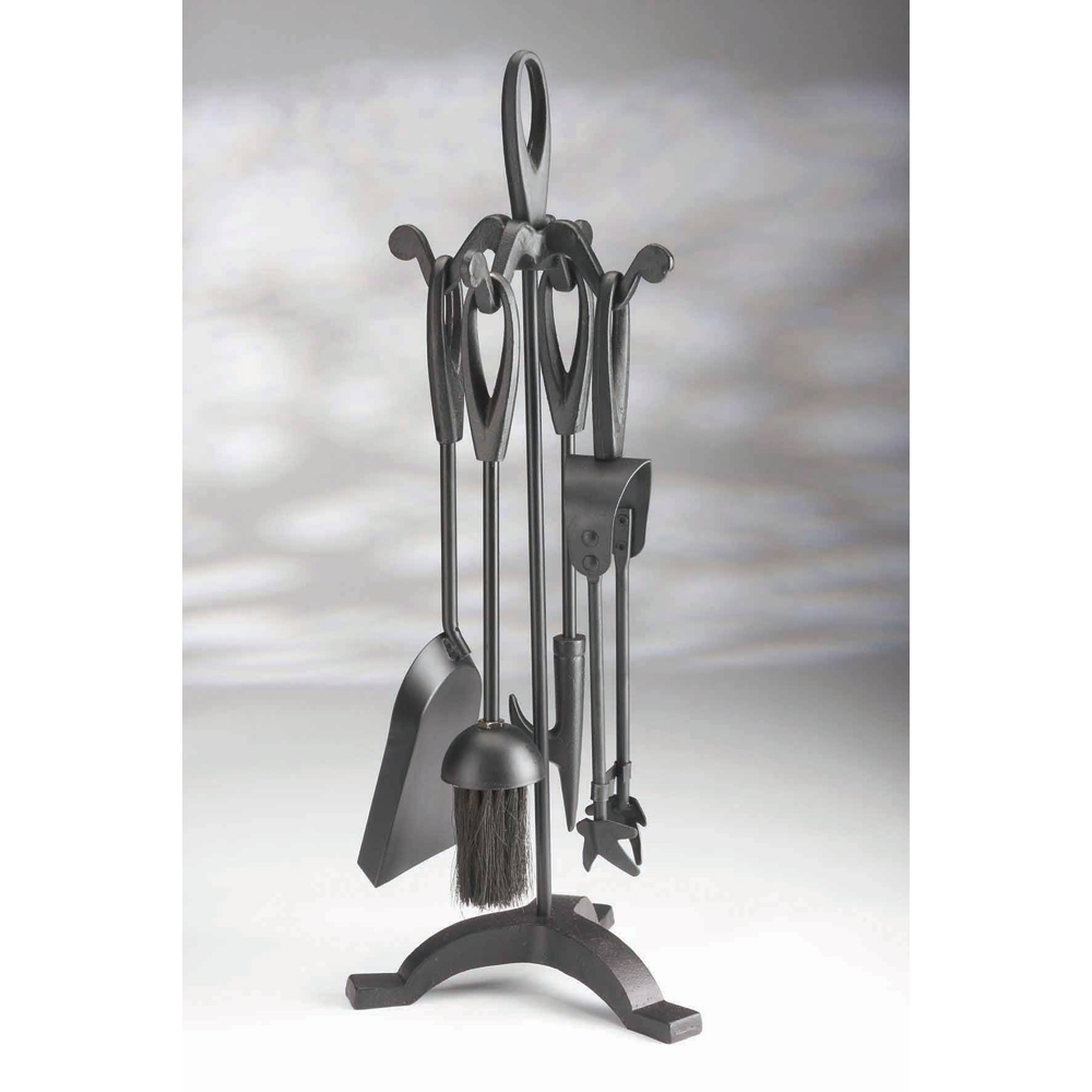 Maintain a tidy and well-managed fireside with this Inglenook Fireside 5 Piece Heavy Duty Fireplace Tool Set. This black cast iron fireside companion set includes a hearth brush, shovel, poker, tongs, and a convenient storage stand. This fireplace tool set comes in a beautiful modern design with high-quality cast iron tools with modern loop handles. These sleek black fireplace tools are hung on the storage stand to keep everything organised and easily accessible by your fire.