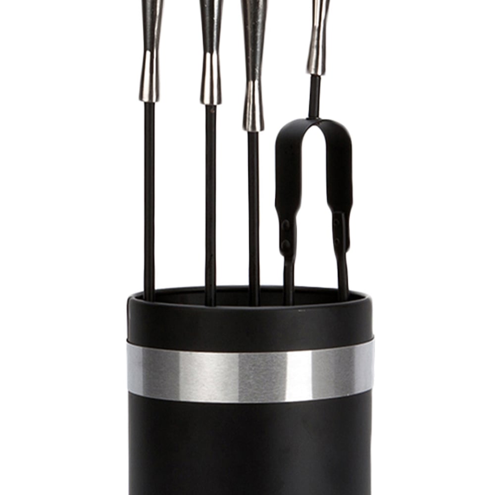 Add rustic charm to your fireside with this Inglenook Fireside Five-Piece Modern Companion Set. Crafted from premium cast iron, this modern companion set is a practical and elegant addition to your fireside. It includes tongs, a shovel, a brush, a poker, and an accompanying metal holder. The sleek black and pewter companion set adds a touch of sophistication to your fireplace area while ensuring that your hearth and fire are kept neat and organised. The pewter handles of the set are ergonomically designed for a comfortable grip when using fire tools. The metal tool holder measures H37 x W20 x L20cm, with companion tools measuring 61cm long.