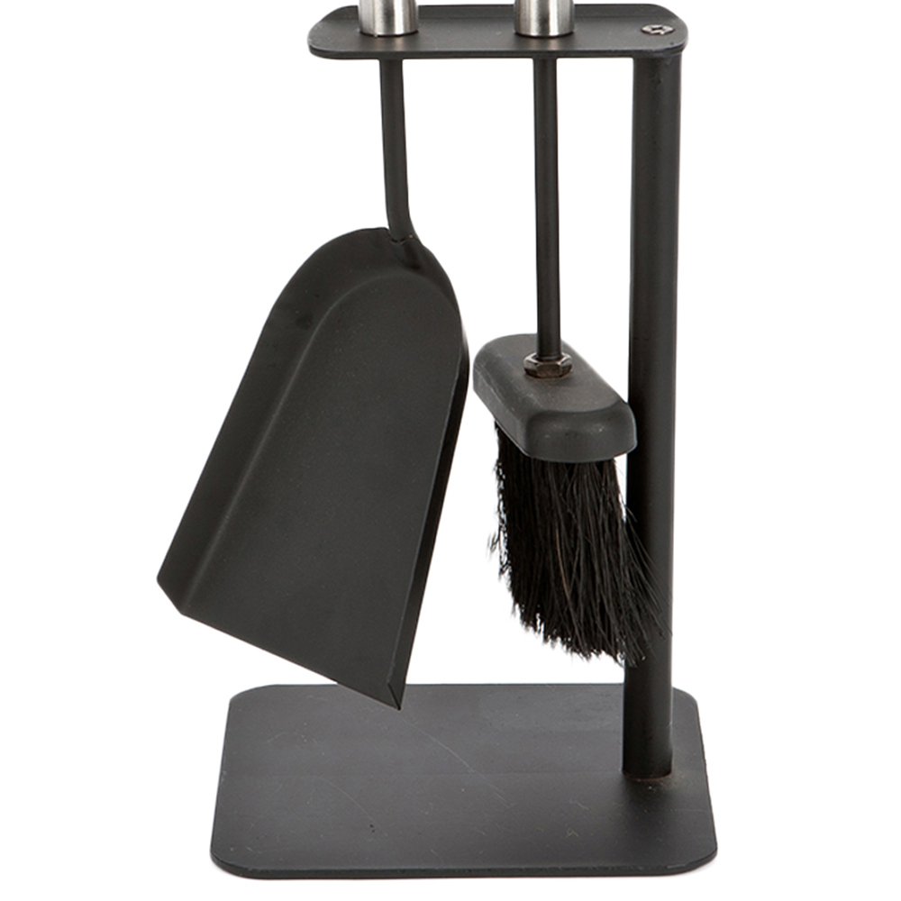 Make a useful addition to your fireside inventory with this Inglenook Fireside Fire Steel Hearth Tidy Set. This hearth tidy set includes a brush and shovel, designed with a sleek black finish. It comes with a matching stand that will keep your hearth clean and neat while adding a touch of elegance to your living space. The hearth brush efficiently sweeps away ash and debris from your fireplace, while the shovel quickly collects ash for disposal. This hearth brush and shovel set measures H37 x W16cm and is made from durable and stylish black cast iron and steel to blend in with your fireplace.