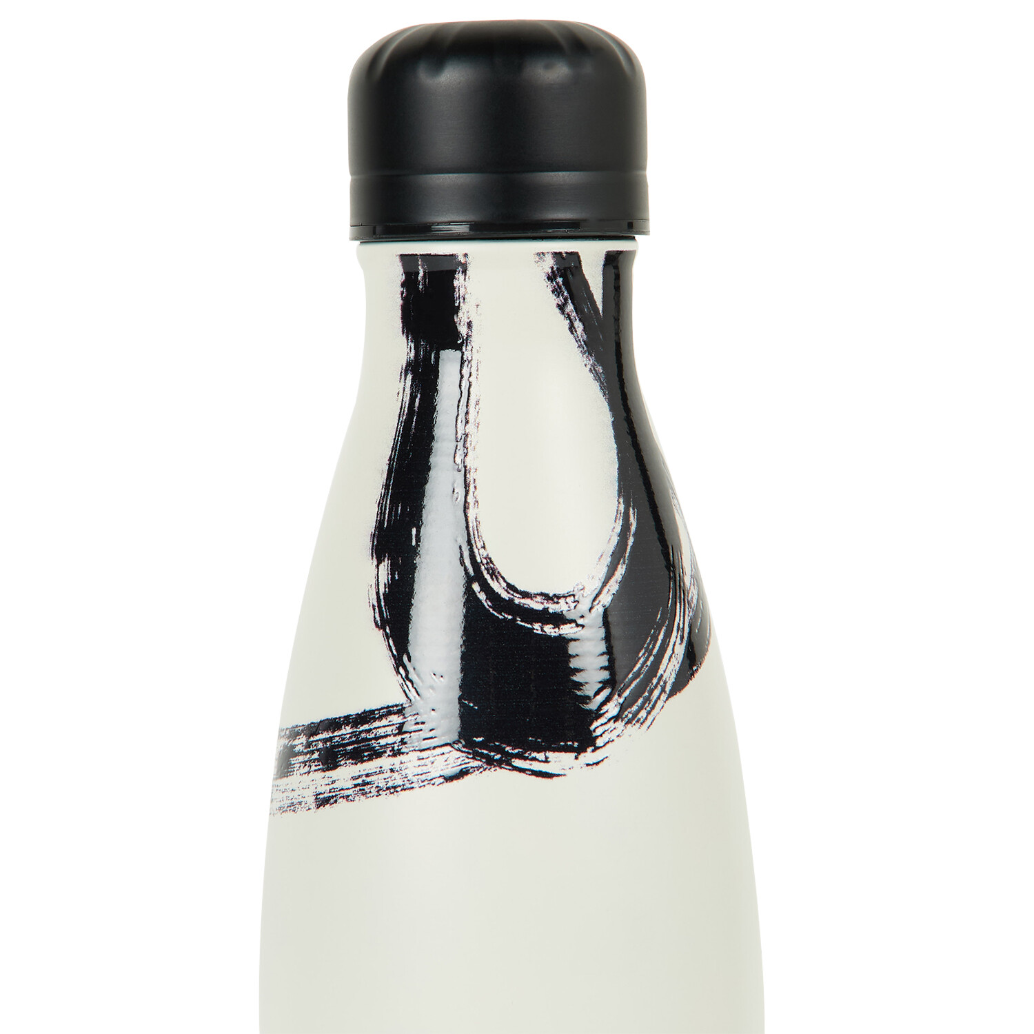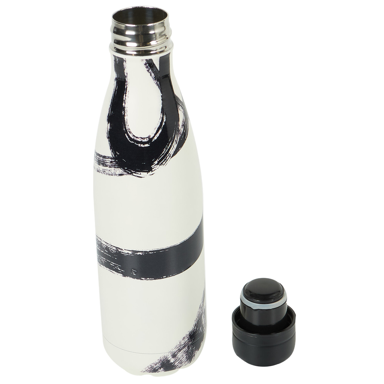 Stay hydrated in style with this Inkwell Vacuum Bottle 500ml. Its contemporary wide black brush stroke pattern on an ivory background adds a modern touch, making it as fashionable as it is functional. Featuring a twin-wall vacuum, it keeps drinks hot for up to eight hours and cold for up to 24 hours while the leakproof design ensures mess-free portability.