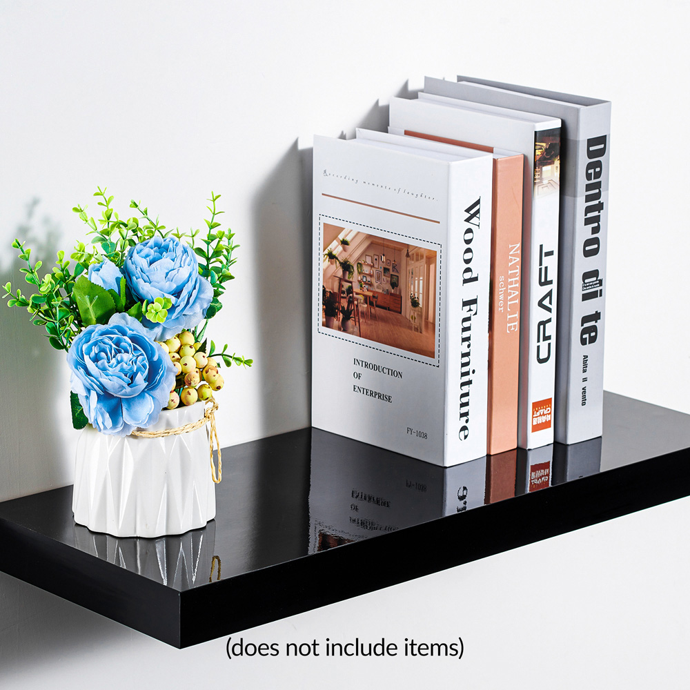 This high gloss floating wall shelf creates ample shelf space in unused areas and corners of the home or working place, a perfect solution for compact areas. It can be assembled easily with the help of instructions and can make your wall most attractive. This shelf is of premium quality making it highly durable and sturdy for a longer period of time and very compatible with your wall colour. It is ideal for keeping items like picture frames, candles or small potted plants, video games, CDs, remotes, books etc. Serves as a beautiful decor for living room bedroom office cafe restaurant hotel.