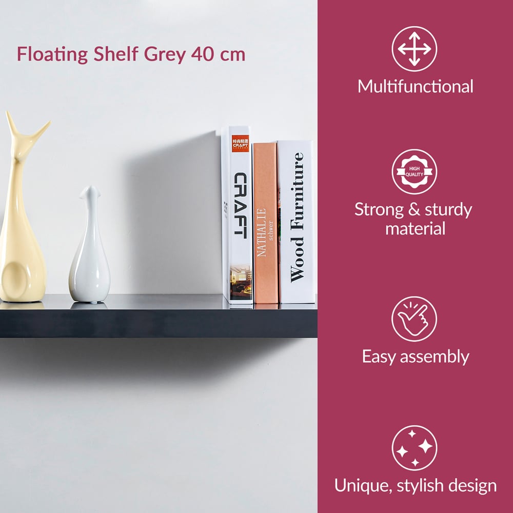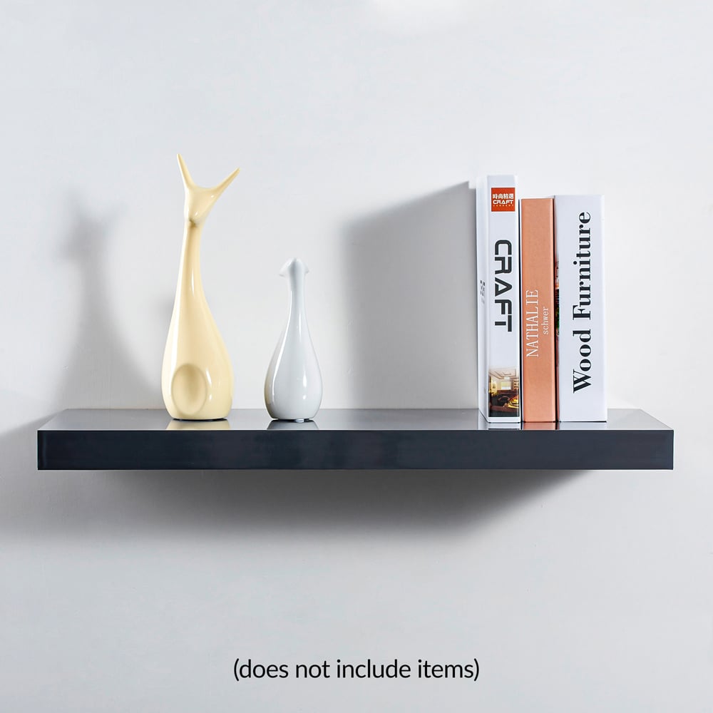 This high gloss floating wall shelf creates ample shelf space in unused areas and corners of the home or working place, a perfect solution for compact areas. It can be assembled easily with the help of instructions and can make your wall most attractive. This shelf is of premium quality making it highly durable and sturdy for a longer period of time and very compatible with your wall colour. It is ideal for keeping items like picture frames, candles or small potted plants, video games, CDs, remotes, books etc. Serves as a beautiful decor for living room bedroom office cafe restaurant hotel.