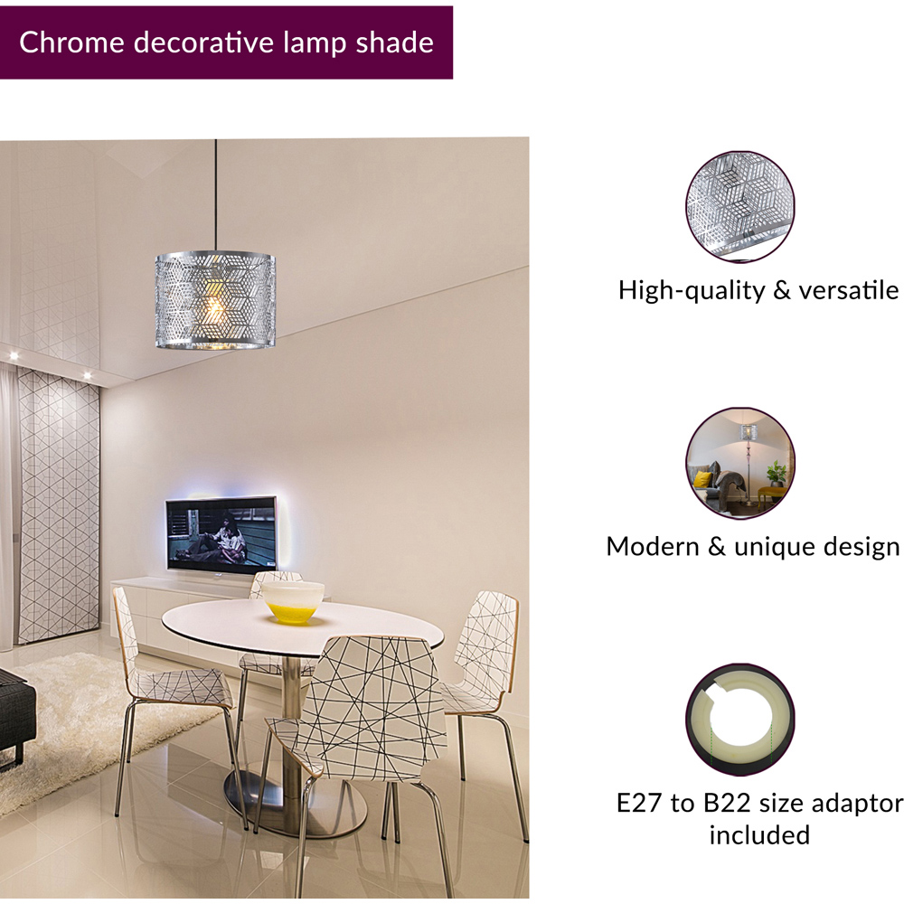 Innoteck Essential Geometric light shade is used to create a classy modern look to your living room, bedroom, kitchen, cafe, bar, or restaurant this stylish vintage decorative lamp shade is the perfect addition. Its versatility enables you to use this with your ceiling pendant, desk lamp or floor lamp and installing this is simple and is not time consuming. Also compatible with E27 and E14 lamp holders. Light fittings and bulbs not included.