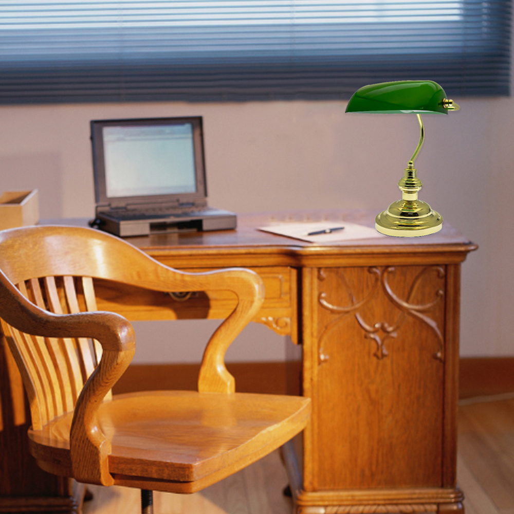 Innoteck banker lamp consists of a premium grade green shade and sturdy polished brass finish metal lamp base that brings style to your home and office. The stylish vintage banker lamp is a great gift idea, and perfect for your office, bedroom, living room, study and office meeting room. You can adjust the shade angle easily to maximize the lighting potentials. Fitted with an inline, on off switch for ease of use. The round base extends to a beautiful ornate stem that gently curves to support the high quality adjustable green glass shade. The reading lamp provides the ideal light at your workplace whether in the office or in the home office.