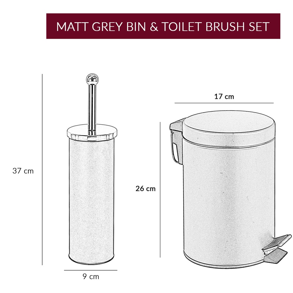 Innoteck Essentials Grey Pedal Dustbin and Toilet Brush with Holder Set