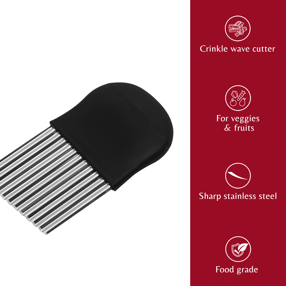 This Innoteck Essentials Stainless Steel Crinkle Cutter is crafted from stainless steel, ensuring durability and longevity. It is the ideal material for kitchen tools that come into regular contact with moisture and food. This cutter will maintain its sharpness and pristine appearance for a long time. The handle is crafted for a comfortable, secure grip, reducing hand fatigue during use. Whether you’re slicing through hard vegetables like carrots and potatoes or softer foods like cucumbers, the cutter’s handle ensures maximum control. Its compact size allows it to occupy minimal countertop space, making it easy to store in drawers or cabinets when not in use.