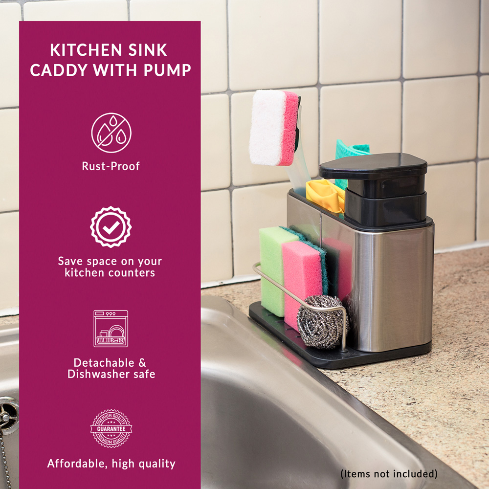 Innoteck Essentials Stainless Steel Sink Caddy with Soap Dispenser