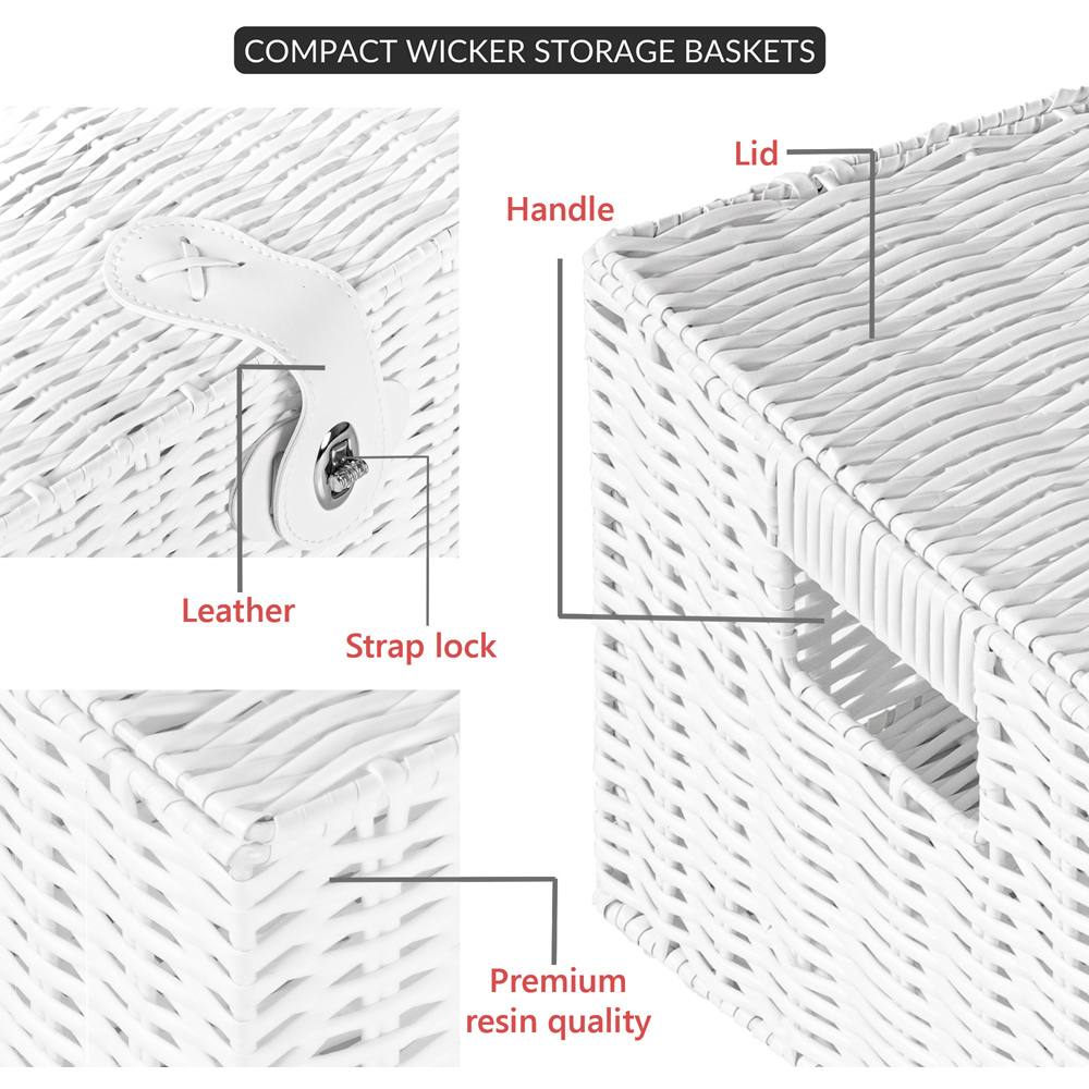 Innoteck Essentials White Wicker Woven Storage Basket with Lid 3 Pack
