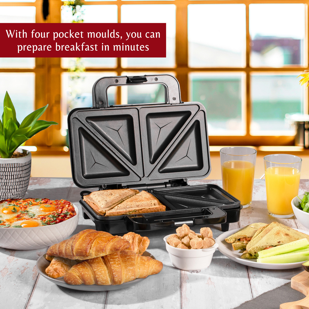 • Features a powerful output for toasting sandwiches in minutes