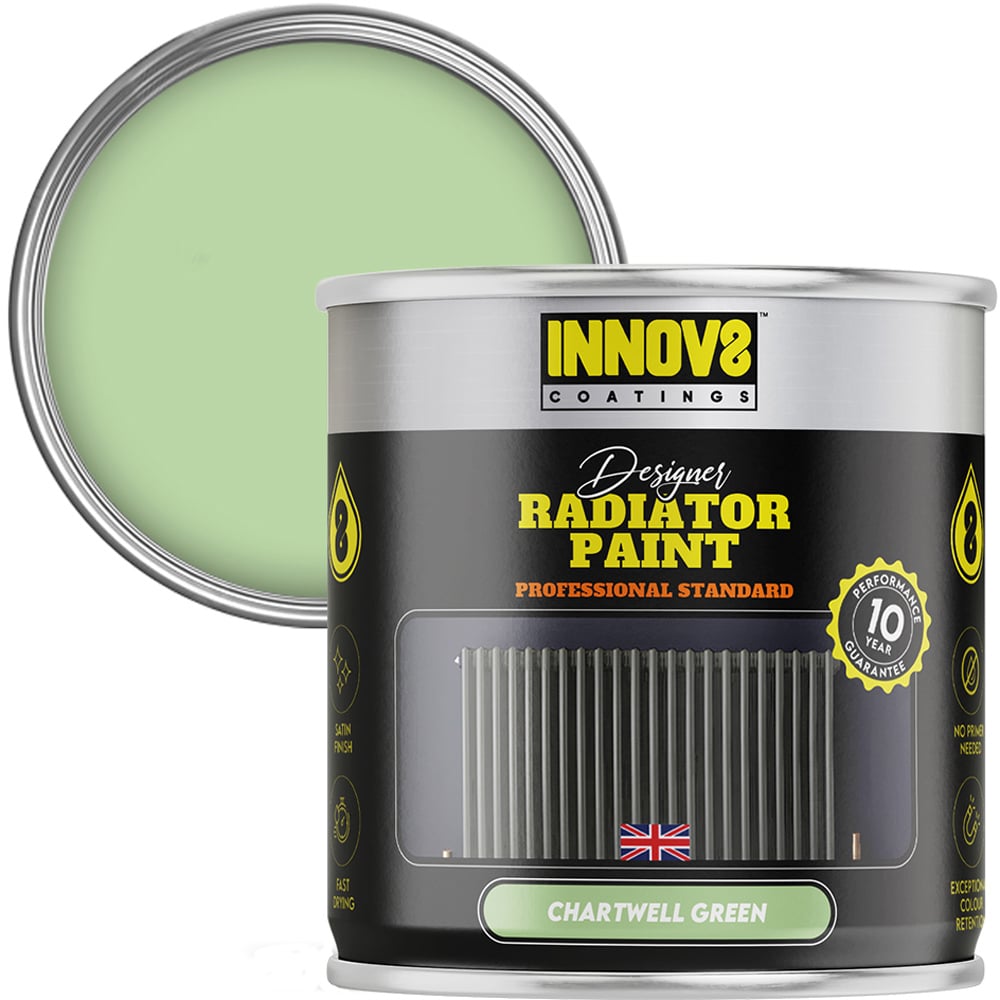 Transform the look of your home with ease using Innov8 Coatings Chartwell Green Radiator Paint 750ml. This top-quality paint is designed to meet the highest standards of quality, durability, and style, making it an excellent choice for anyone looking to give their space a fresh and modern update. With its professional-grade formula, this paint is incredibly easy to apply, leaving a flawless satin finish that will breathe new life into your space. Best of all, it dries quickly in just 15 to 20 minutes, and there's no need for a primer or topcoat. You'll also enjoy peace of mind thanks to the product's 10-year guarantee. Upgrade your space effortlessly with this paint today.