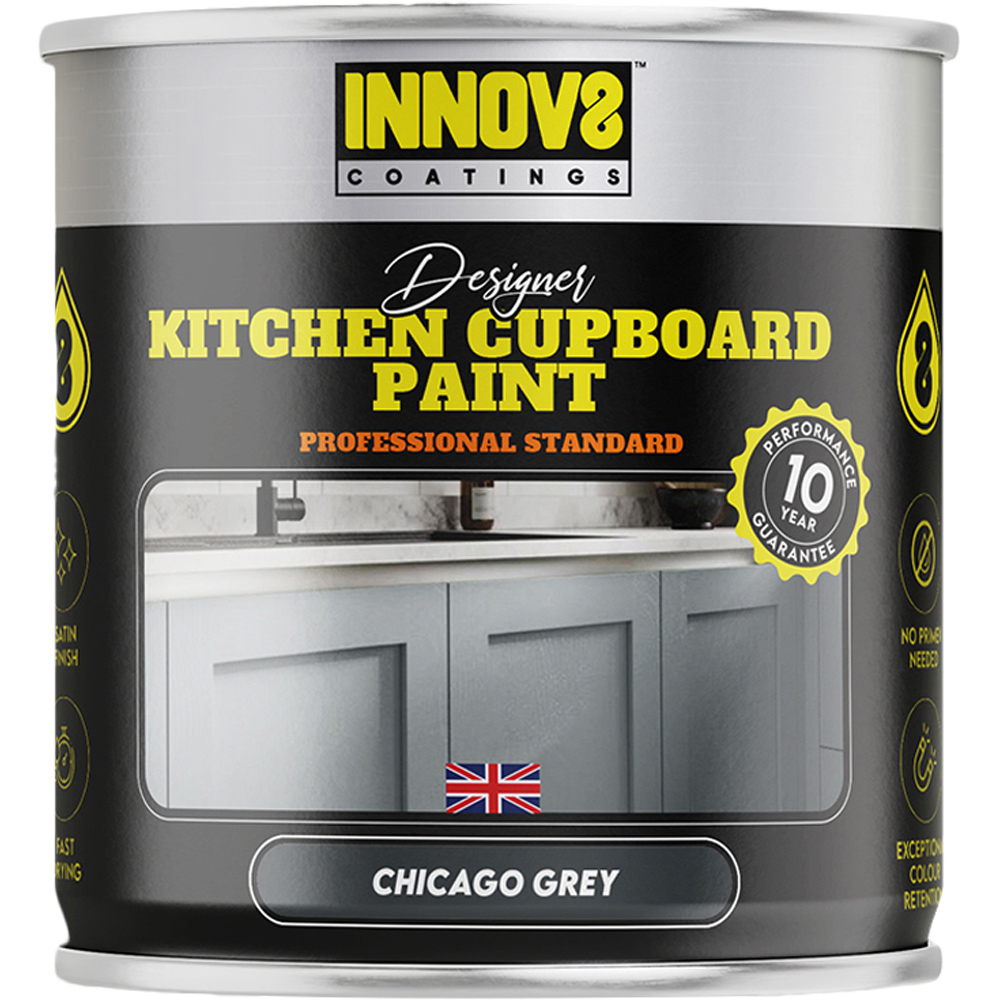 Transform the look of your home with ease using Innov8 Coatings Chicago Grey Kitchen Cupboard Paint 750ml. This top-quality paint is designed to meet the highest standards of quality, durability, and style, making it an excellent choice for anyone looking to give their space a fresh and modern update. With its professional-grade formula, this paint is incredibly easy to apply, leaving a flawless satin finish that will breathe new life into your space. Best of all, it dries quickly in just 15 to 20 minutes, and there's no need for a primer or topcoat. You'll also enjoy peace of mind thanks to the product's 10-year guarantee. Upgrade your space effortlessly with this paint today.