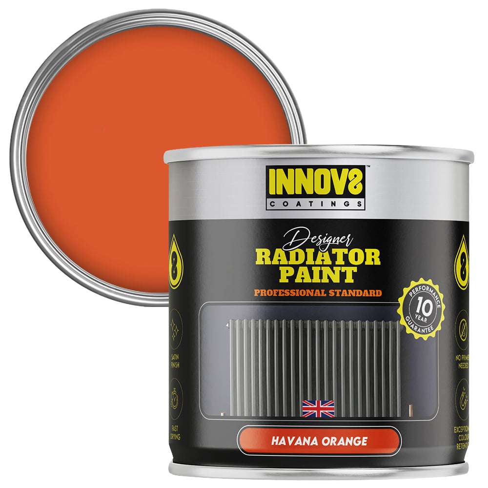 Transform the look of your home with ease using Innov8 Coatings Designer Radiator Havana Orange Satin Paint 750ml. This top-quality paint is designed to meet the highest standards of quality, durability, and style, making it an excellent choice for anyone looking to give their space a fresh and modern update. With its professional-grade formula, this paint is incredibly easy to apply, leaving a flawless satin finish that will breathe new life into your space. Best of all, it dries quickly in just 15 to 20 minutes, and there's no need for a primer or topcoat. You'll also enjoy peace of mind thanks to the product's 10-year guarantee. Upgrade your space effortlessly with this paint today.