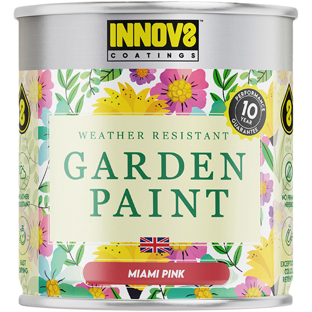 Give your outdoor space a stunning makeover with Innov8 Coatings Miami Pink Garden Paint - the perfect way to add bold colour and style with minimal effort. This silk satin finish 750ml paint delivers a professional-quality transformation for fences, sheds, wooden gates, rattan and wooden garden furniture, walls, planters and more. Brighten your garden today with our easy-to-use, high-performance garden paint that keeps your outdoor space looking fresh and stylish for years to come backed by a ten-year guarantee.