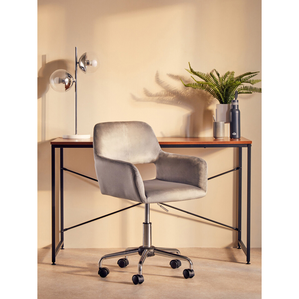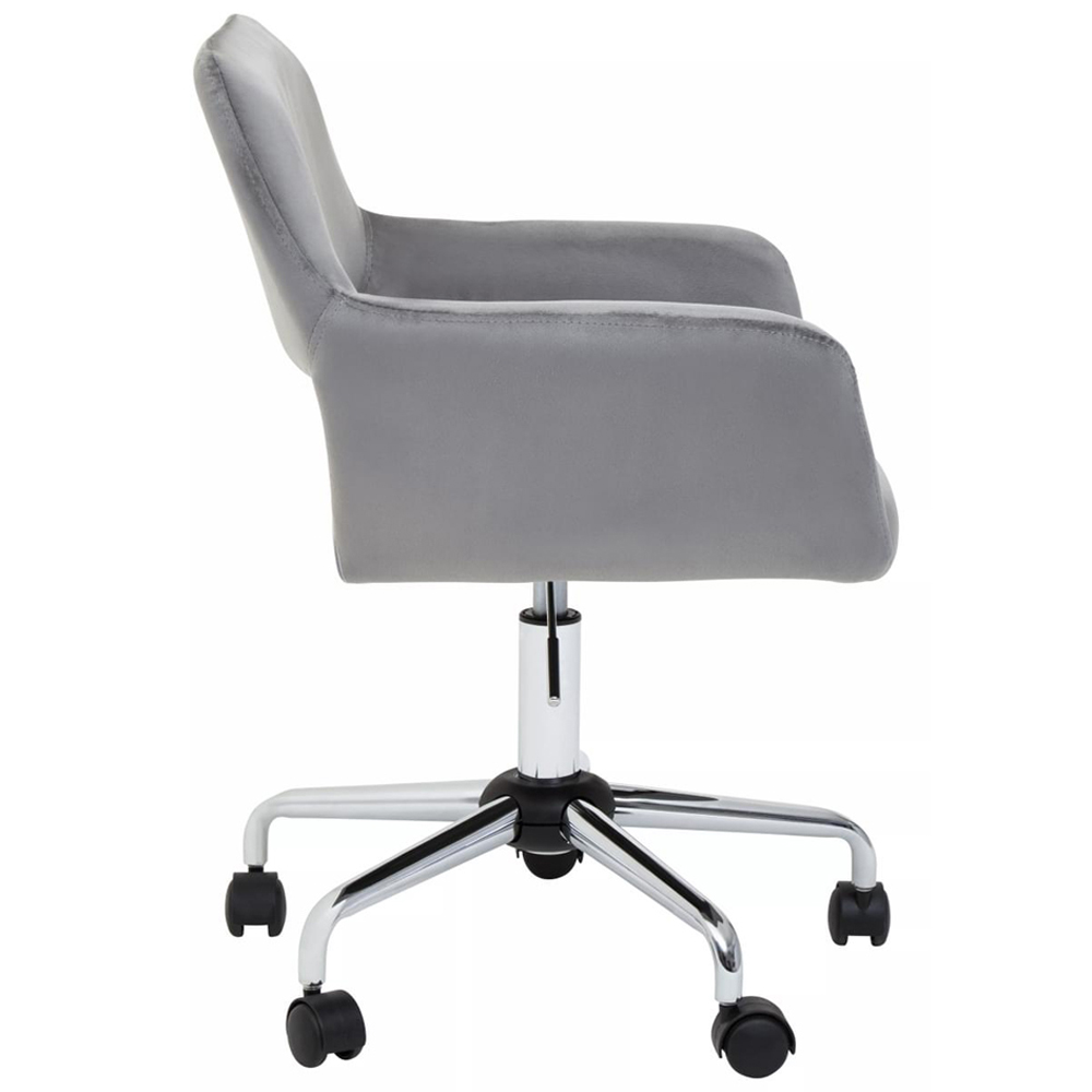 Add a touch of vibrance to your interior space with the Brent Grey and Chrome Swivel Home Office Chair. This office chair has a cosy cushioned seat with a firm backrest and armrests for providing ultimate comfort. This chair has been upholstered using supersoft velvet fabric and features a swivel chrome base with castors for easy movement.