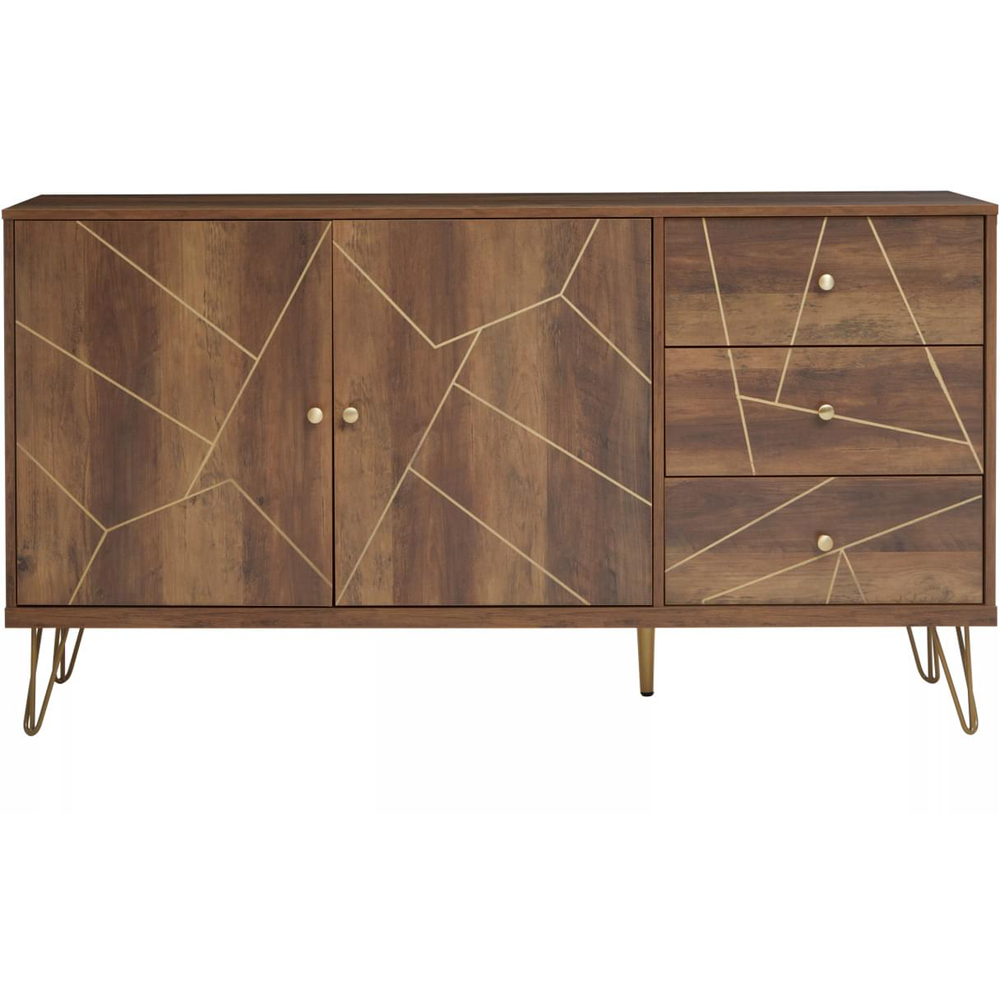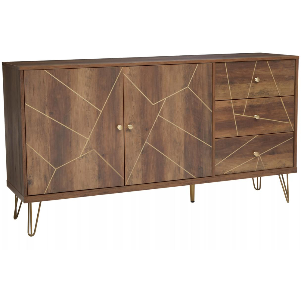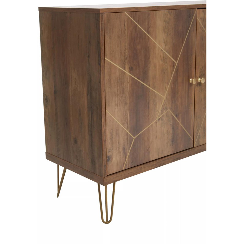 Pretty yet practical, this Interiors by Premier Flori Sideboard will be a fine addition to your decor. Its two-door and three-drawer design is encased in a wood veneering effect and supported by metal legs in a warm metallic finish. The front side of this versatile cabinet exhibits intricate patterns, and it offers ample space to store and showcase multiple items.