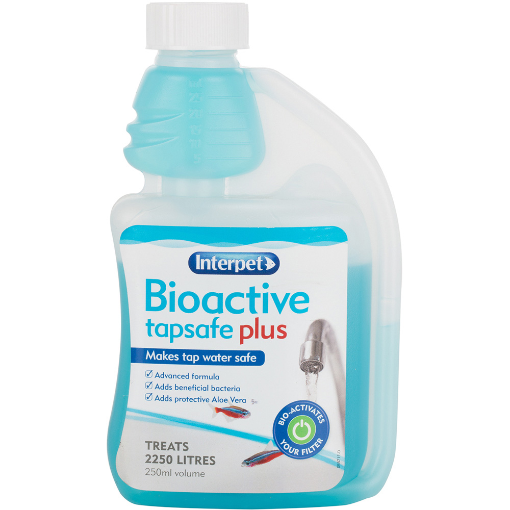 Interpet's Bioactive Tapsafe Plus boosts good bacteria within your aquarium while keeping it healthy, clean and free from toxic chlorine and heavy chemicals. Guaranteed to make tap water safe for all fish, the Bioactive Tapsafe Plus 250ml treats up to 2,225 litres of water while bio-activating the tank's filter. Featuring an easy to use dosage chamber, this treatment is perfect for keeping your fish happy and healthy.
