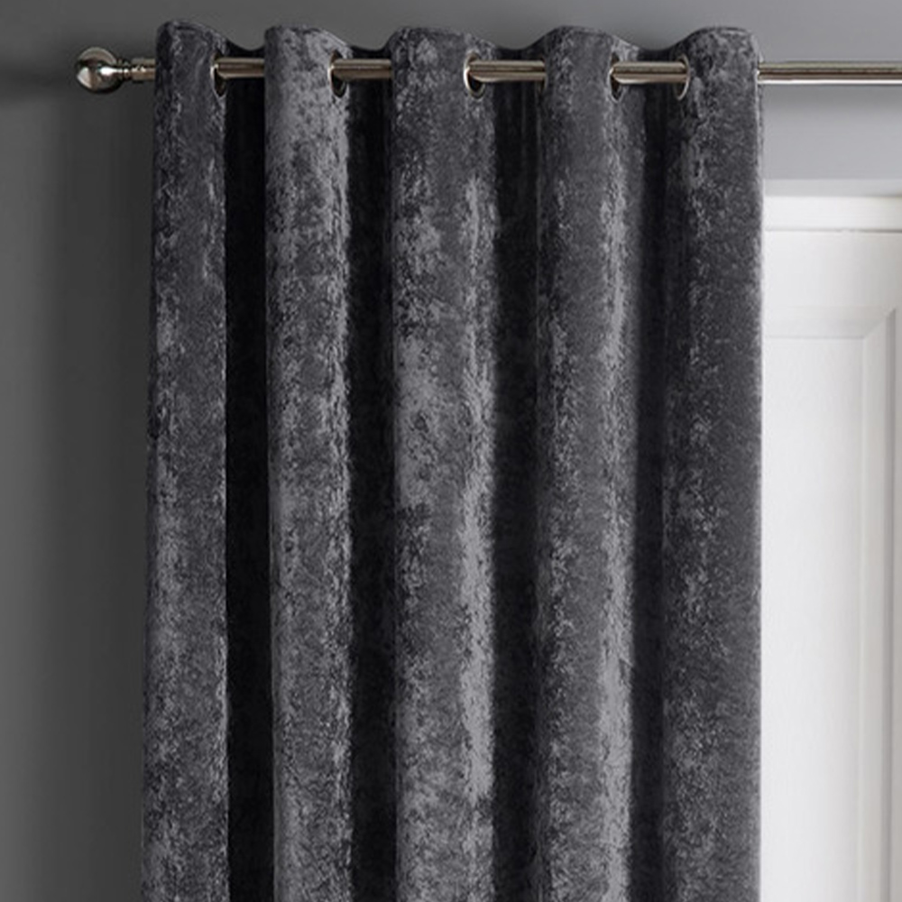 Get ready to enhance your home with a touch of refinement using the Intimates Charcoal Crushed Velvet Door Curtain 117 x 213cm. Crafted from soft and luxurious crushed velvet, this door curtain not only feels wonderful to the touch but also elevates the look of any room. The specially treated velvet offers a unique crushed appearance, adding an extra layer of sophistication to your decor. Featuring a chrome eyelet header, this curtain is incredibly easy to install. Its fully lined design ensures that this curtain hangs beautifully while maintaining privacy. Combining style and practicality, this curtain is the perfect addition to make your home both beautiful and functional.