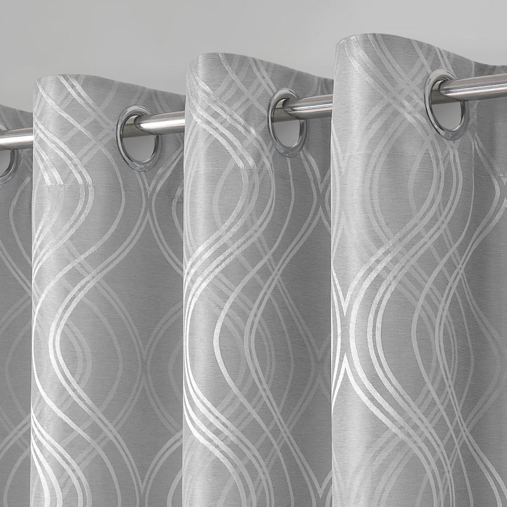 Upgrade your home with Intimates Clarissa Grey Ringtop Curtains 117 x 137cm. These curtains feature soft colours that complement any home style. The beautiful woven design adds a touch of luxury to your room. The elegant white swirls stand out against the beige background, giving your space a classy look. The curtains are simple to put up with their chrome eyelet header and hang nicely on your curtain pole. They are lined to maintain their shape and protect your furniture from sunlight, keeping it in top condition. Additionally, these curtains are machine washable, making them easy to care for.