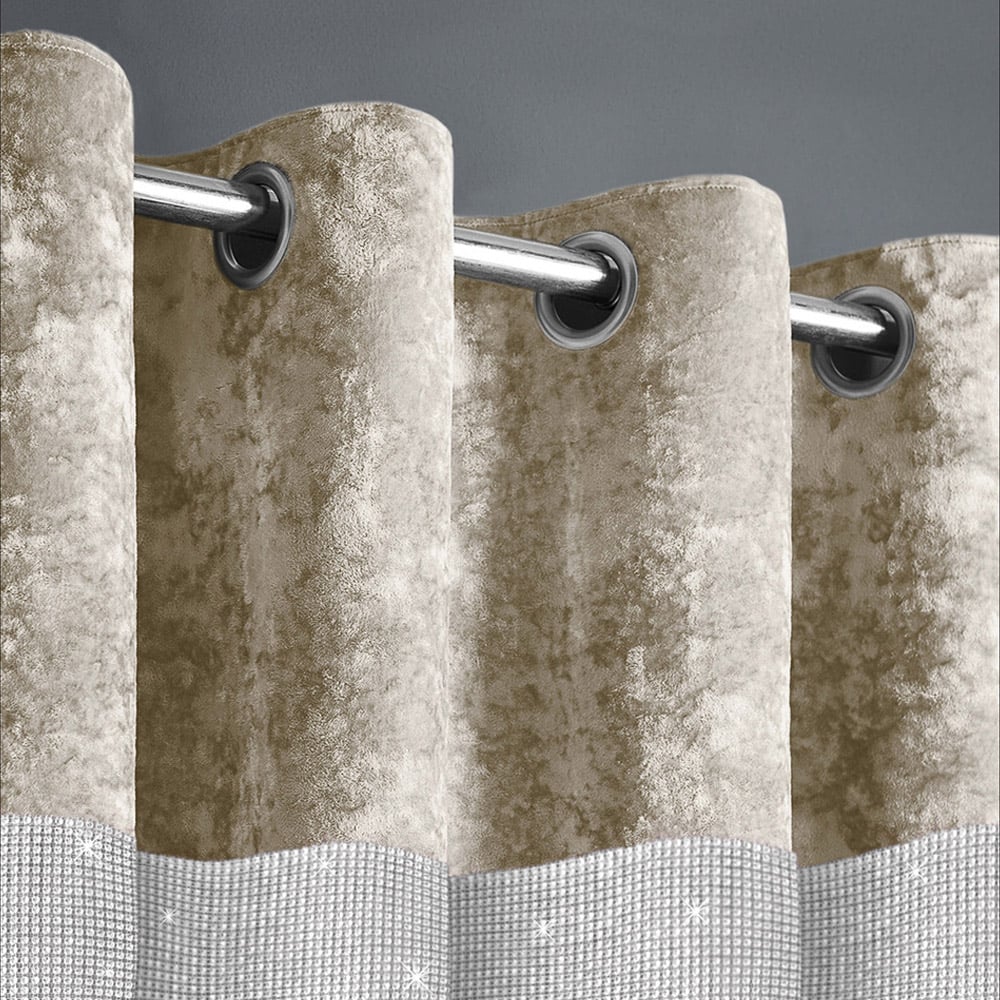 Intimates Diamante Natural Crushed Velvet Eyelet Curtains 168 x 223cm