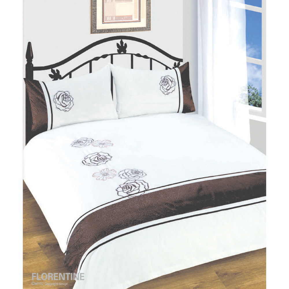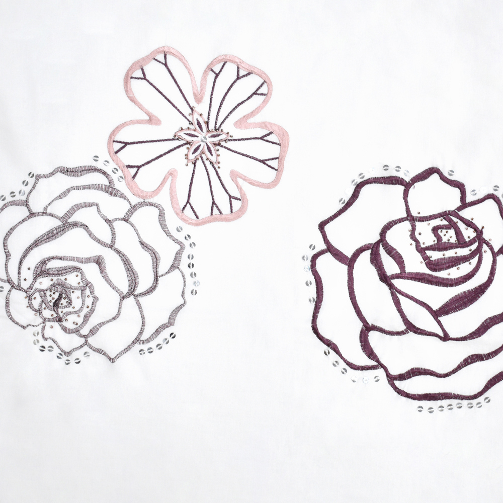 Introducing the Intimates Floral Florentine Sequin Duvet Cover and Pillowcase Set, perfect for turning your bed into a cozy retreat. Made from a blend of cotton and polyester, this duvet cover is both soft and durable, with a smooth matte finish. The highlight of this bedding is the embroidered roses in contrasting colours, surrounded by sparkling sequins that add a touch of glamour. Finished with a ribbon border and ruffled panels, it brings sophistication to your bedroom. It's easy to care for too - just toss it in the washing machine. Each set includes one pillowcase for single size and two for double, king, and super king sizes, ensuring you have everything you need for a complete bedding setup.