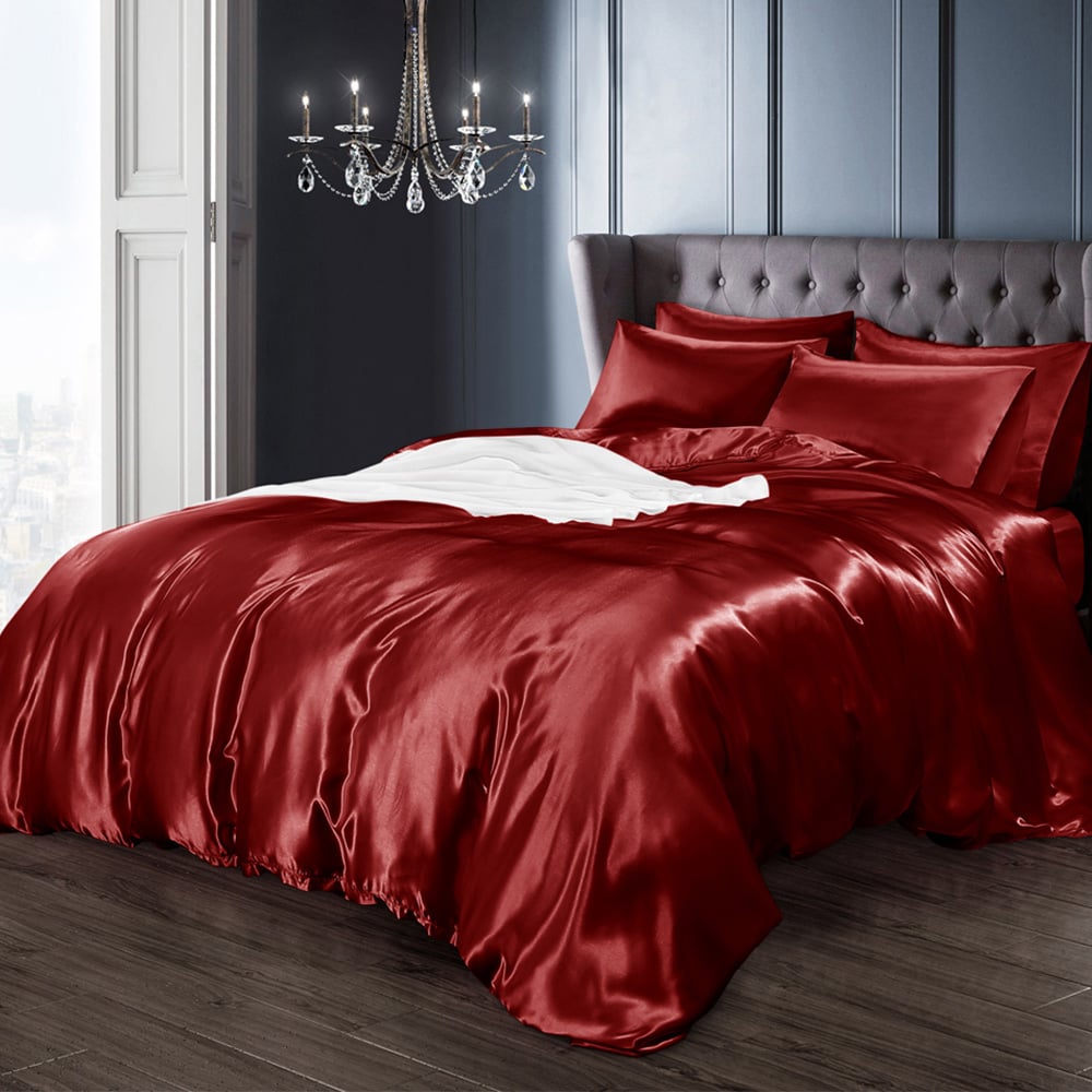 Experience the ultimate indulgence with the Satin Bedding Set, designed to captivate with its opulent beauty and silky softness. The sumptuous satin fabric not only exudes elegance but also offers an irresistibly smooth touch against your skin. The fabric’s radiant sheen elevates your bedroom's aesthetic, creating a haven of refined sophistication. Revel in a sleeping experience that redefines luxury and comfort. Simplify your bedroom setup with the all-inclusive Satin Bedding Set. It features a fitted sheet and extra pillowcases, ensuring a cohesive look without the hassle of finding matching pieces. Available in four sizes, the set includes 2 pillowcases for Single and 4 pillowcases for Double, King, and Super King sizes, providing a seamless blend of style and practicality Enjoy a flawless fit with fitted sheets crafted to match your mattress perfectly. The 30cm box depth and fully elasticated edges ensure a snug, wrinkle-free appearance that stays securely in place, even for active sleepers. Rest assured with bedding that offers both functionality and elegance. Designed for ease and style, the button closure keeps your duvet secure while adding a refined touch. Maintenance is effortless—simply machine wash and tumble dry on low heat to keep your bedding fresh and pristine for years to come. Rest easy knowing the Satin Bedding Set meets OEKO-TEX Standard 100 certification. This rigorous testing ensures it’s free from harmful substances, making it a safe and eco-friendly choice for you and your family. Transform your bedroom into a sanctuary of style and comfort with the Satin Bedding Set, where elegance meets practicality.