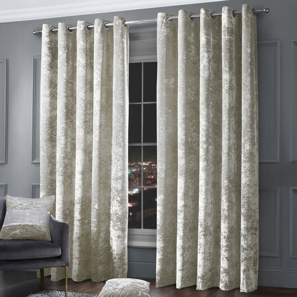Intimates Natural Plain Crushed Velvet Curtains 117X189cm