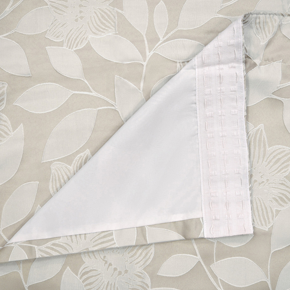 Enhance your space with these Intimates Serena Silver Tape Top Curtains 223 x 183cm. Featuring a modern floral design, these curtains brighten up any room. The detailed stitching around the leaves adds a charming touch to the design. Made from 100% polyester, the fabric is soft, durable, and hangs beautifully. The three-inch tape header ensures easy hanging on any curtain pole or track. Fully lined for added privacy and insulation, these curtains are a practical and stylish addition to any space. These curtains are machine washable for convenient cleaning and require minimal upkeep for easy care.