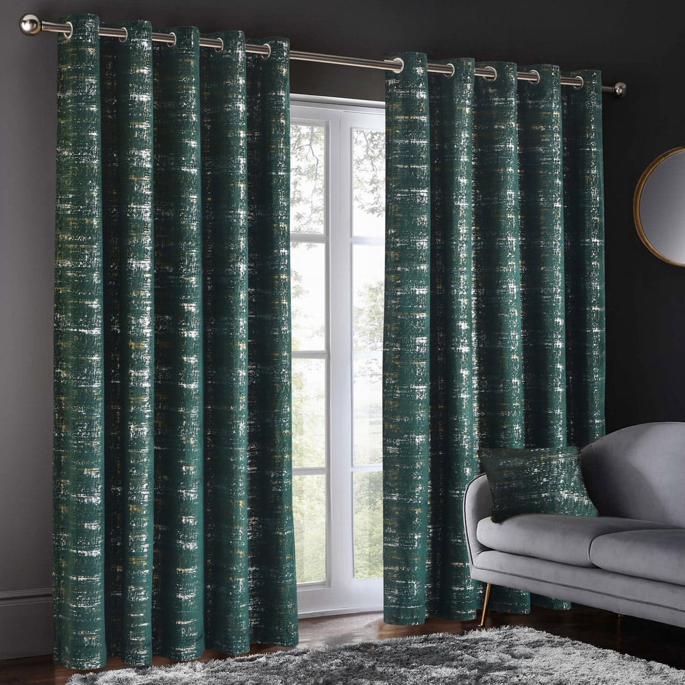 Enhance any room with these Intimates Warwick Green Metallic Velvet Eyelet Curtains 168 x 183cm. These stunning foil metallic velvet curtains create a striking impact, enhancing any room. Designed to adorn windows with beauty, their fully lined design offers both privacy and style. Carefully woven to hang perfectly, they also help reduce sound and light, ensuring a comfortable and serene environment. Featuring a ring top design, these curtains are easy to hang. These curtains are machine washable for convenient cleaning and require minimal upkeep for easy care.