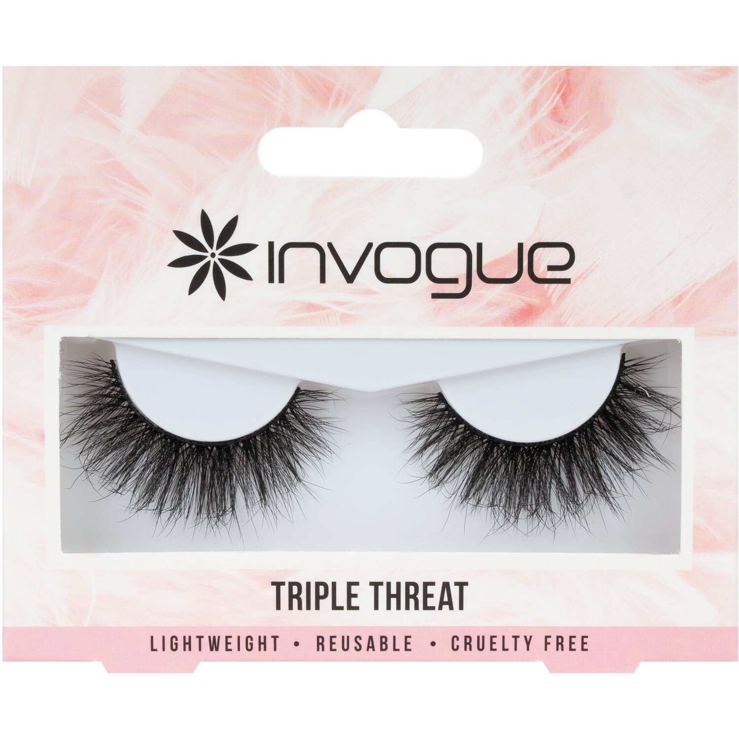Create a show-stopping look with Triple Threat False Lashes from Invogue. Designed for the lash babes craving the perfect mix of volume, wispiness, and length, these faux mink style, eye-opening lashes are beautifully layered and suitable for nearly every eye shape!